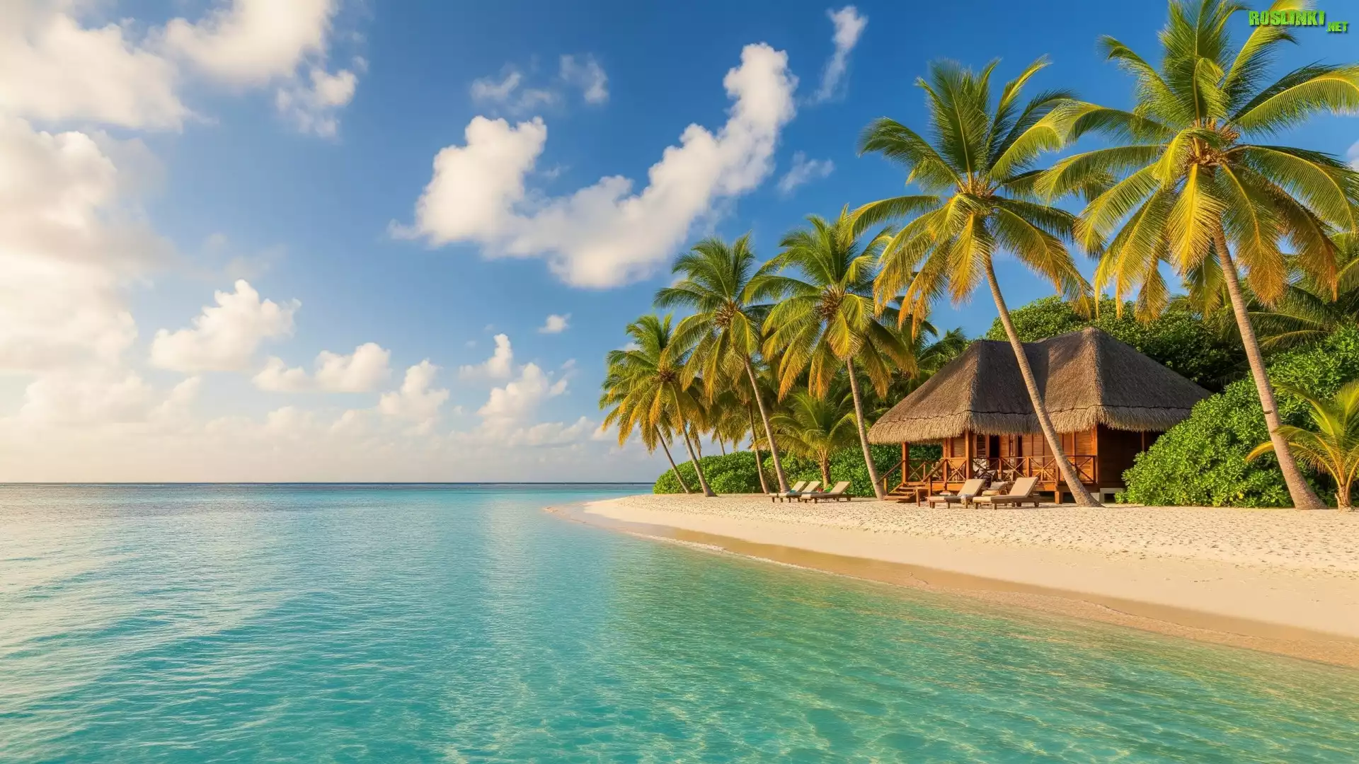 Rośliny: Dom, Palmy, Plaża, Morze, Tropiki