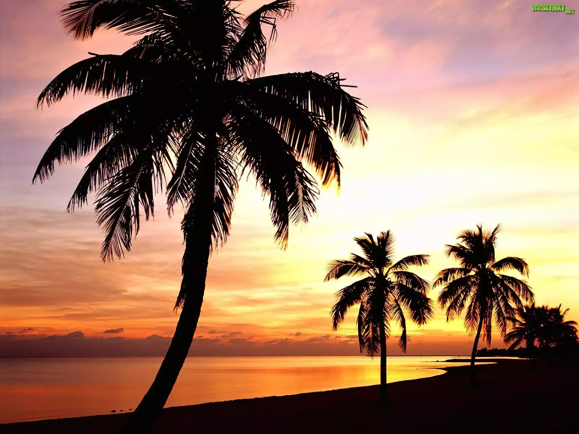 Rośliny: Palmy, Zachód Słońca, Jezioro