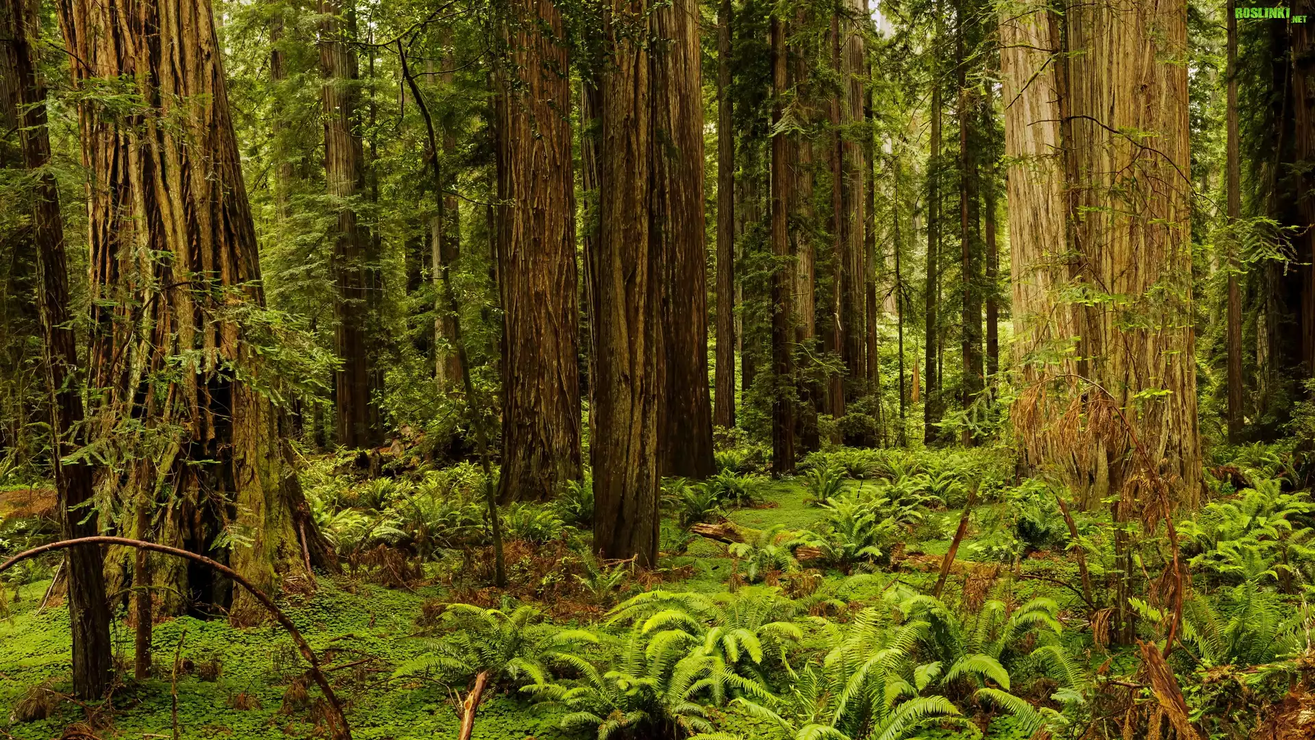 Rośliny: Stany Zjednoczone, Stan Kalifornia, Park Narodowy Redwood, Drzewa, Sekwoje, Paprocie