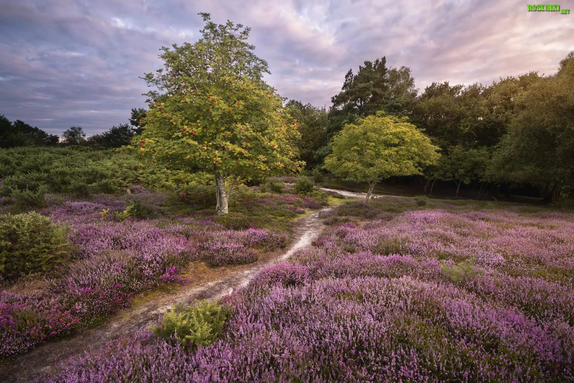 Rośliny: Las, Drzewa, Polana, Paprocie, Wrzosy, Wrzosowisko