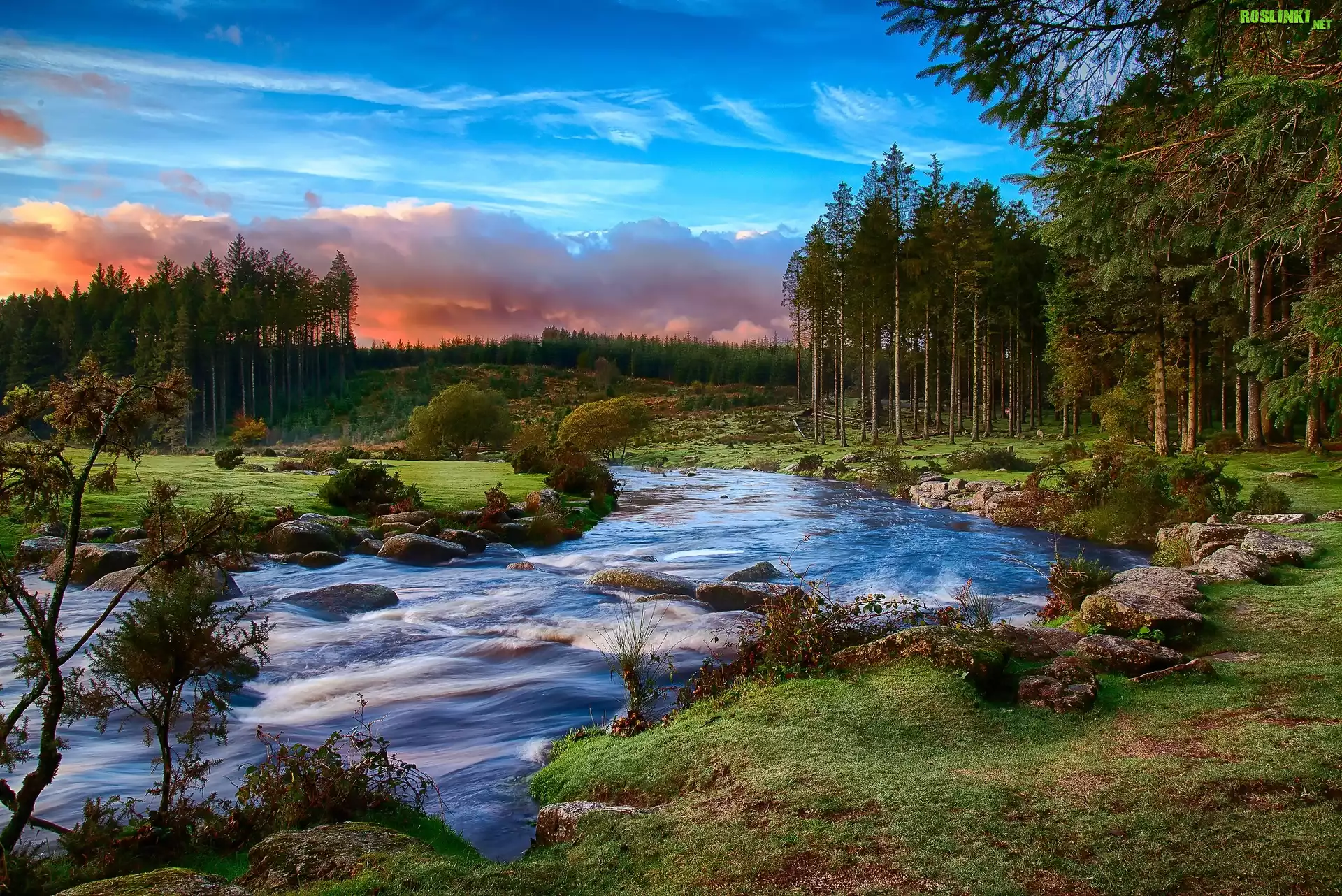 Anglia, Park Narodowy Dartmoor, Devon, Rzeka, Drzewa