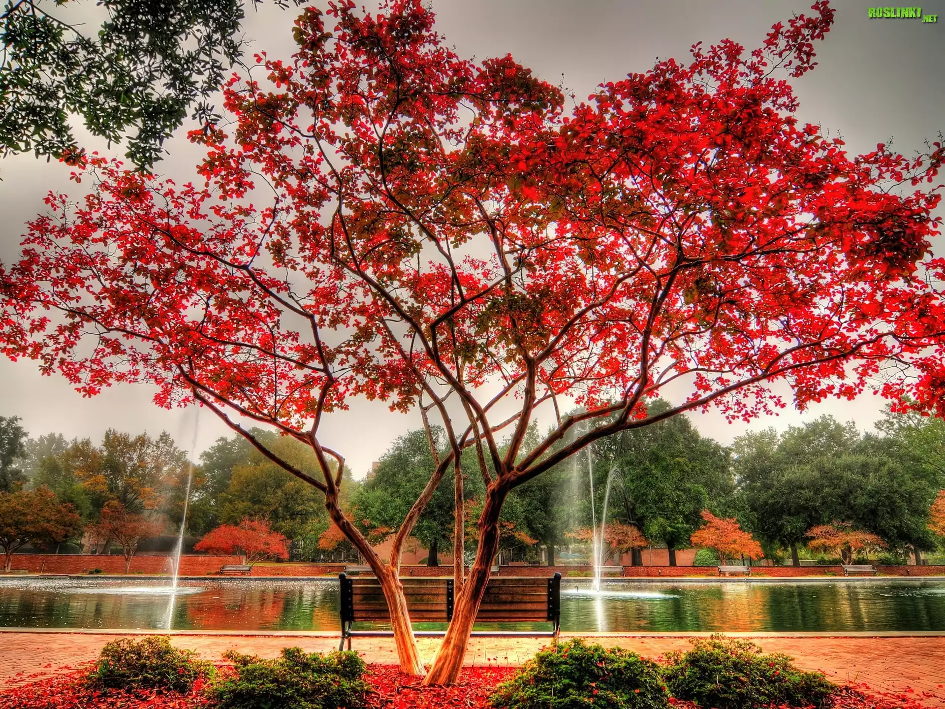 Rośliny: Park, Drzewo, Ławka, Jesień