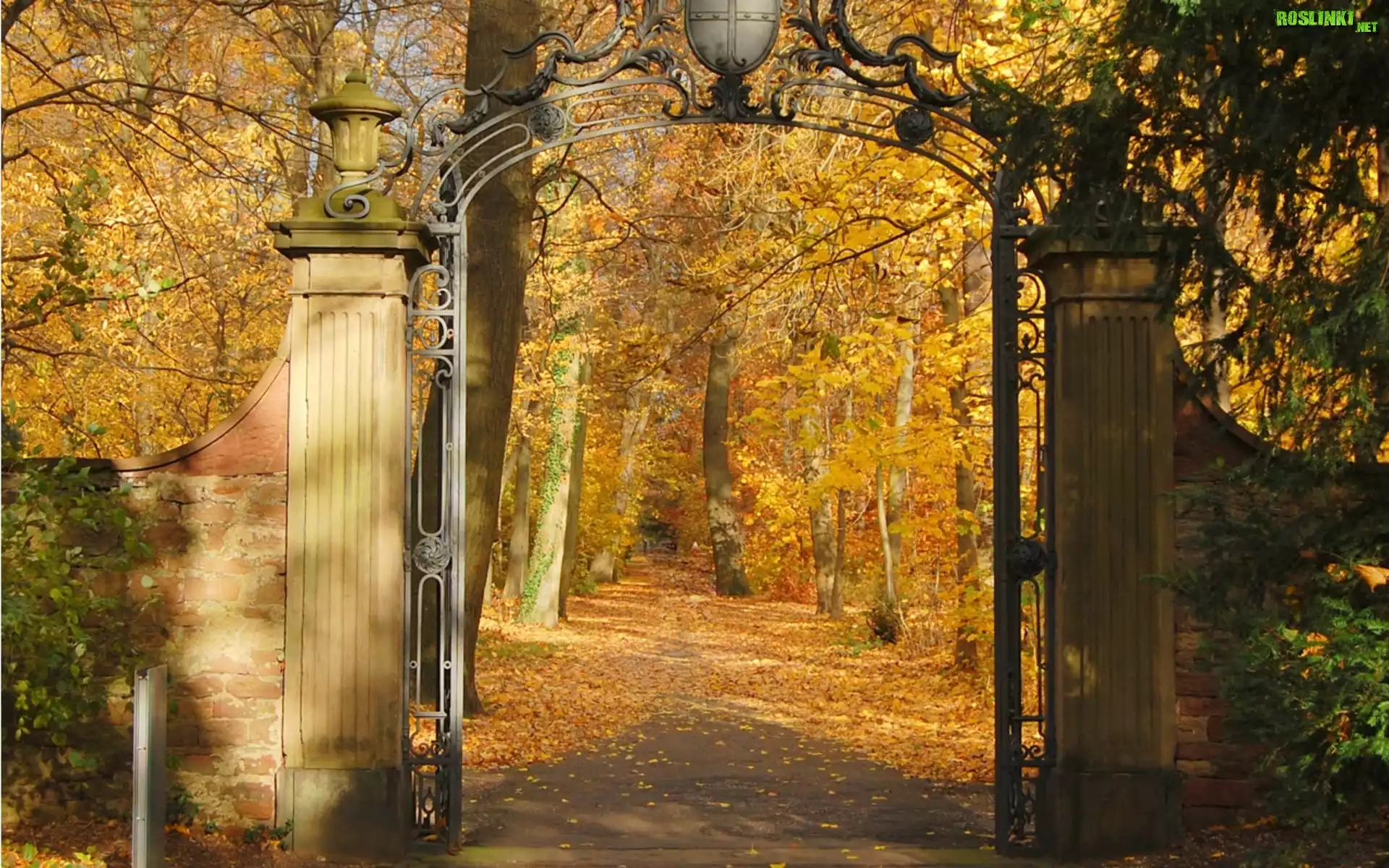 Rośliny: Park, Drzewa, Liście, Brama, Jesień
