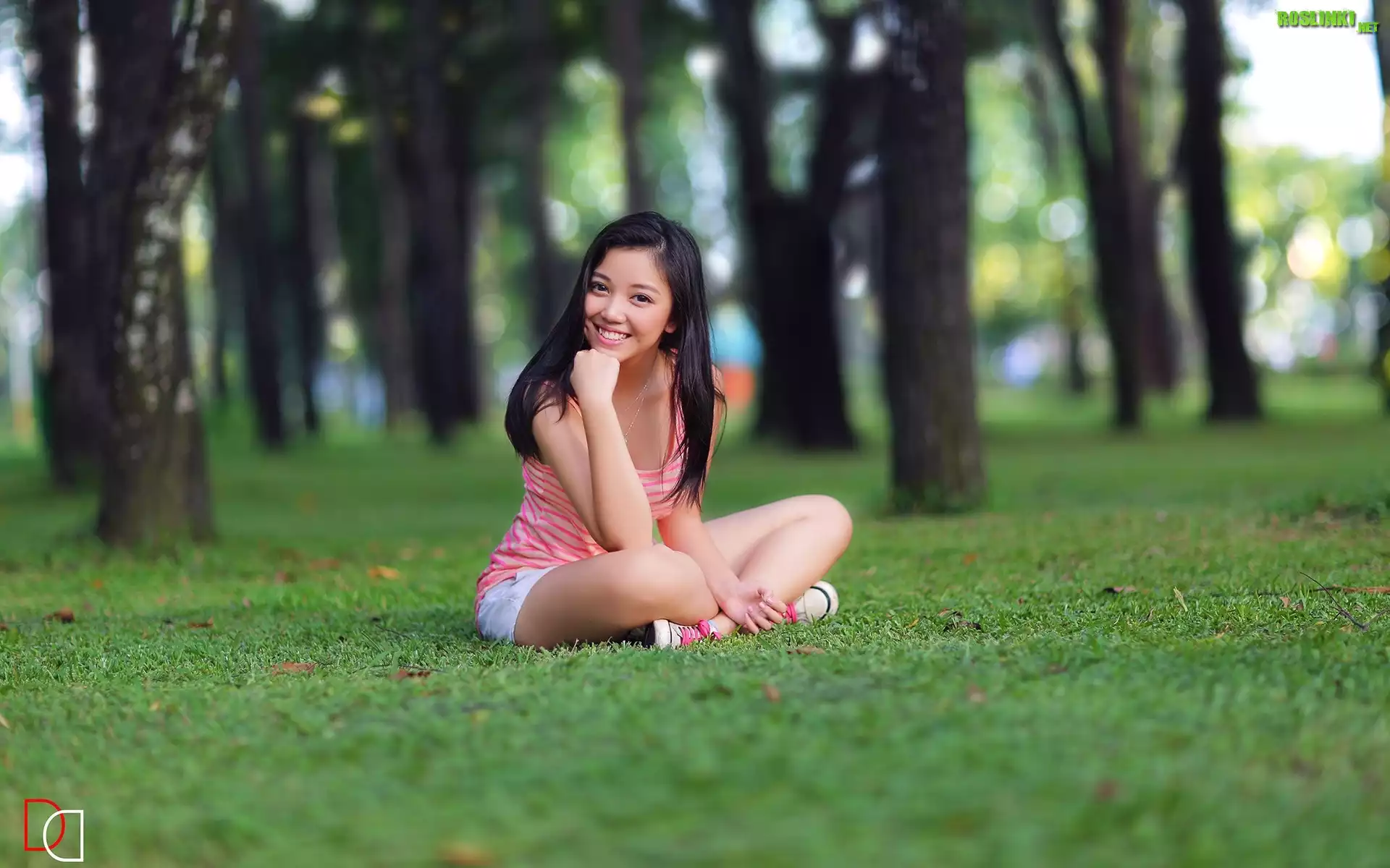 Rośliny: Park, Trawa, Brunetka, Uśmiech