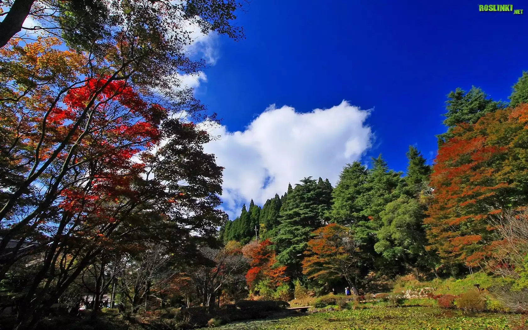 Rośliny: Park, Kolorowe, Drzewa, Chmury, Jesień