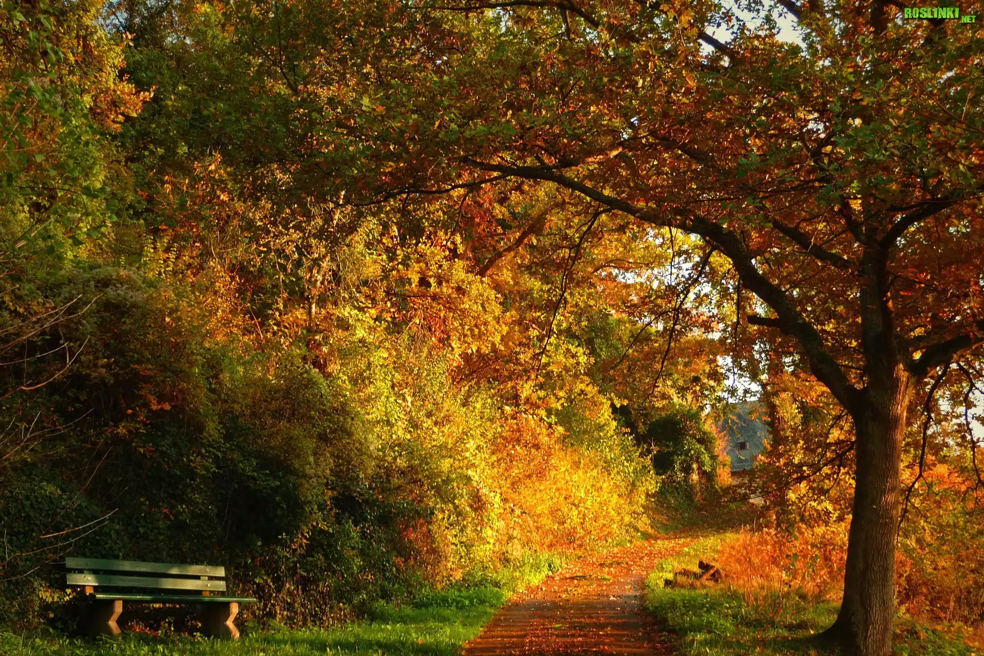 Rośliny: Park, Drzewa, Ścieżka, Ławka