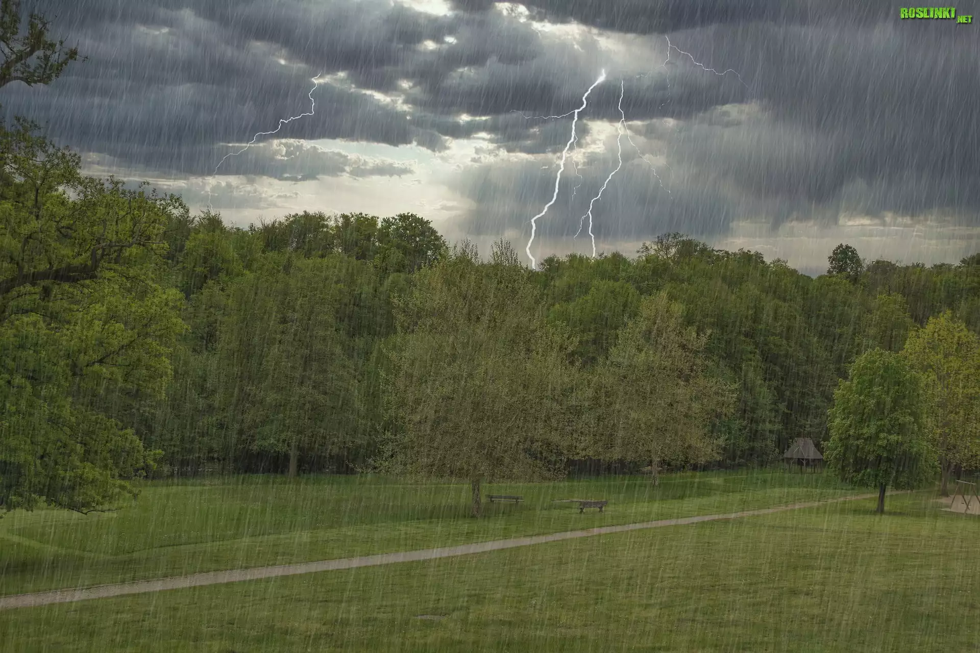 Rośliny: Park, Burza, Deszcz, Piorun, Drzewa Pioruny