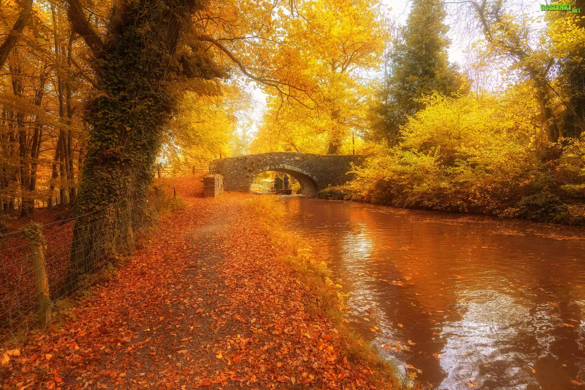 Rośliny: Park, Rzeka, Kamienny, Most, Drzewa, Jesień