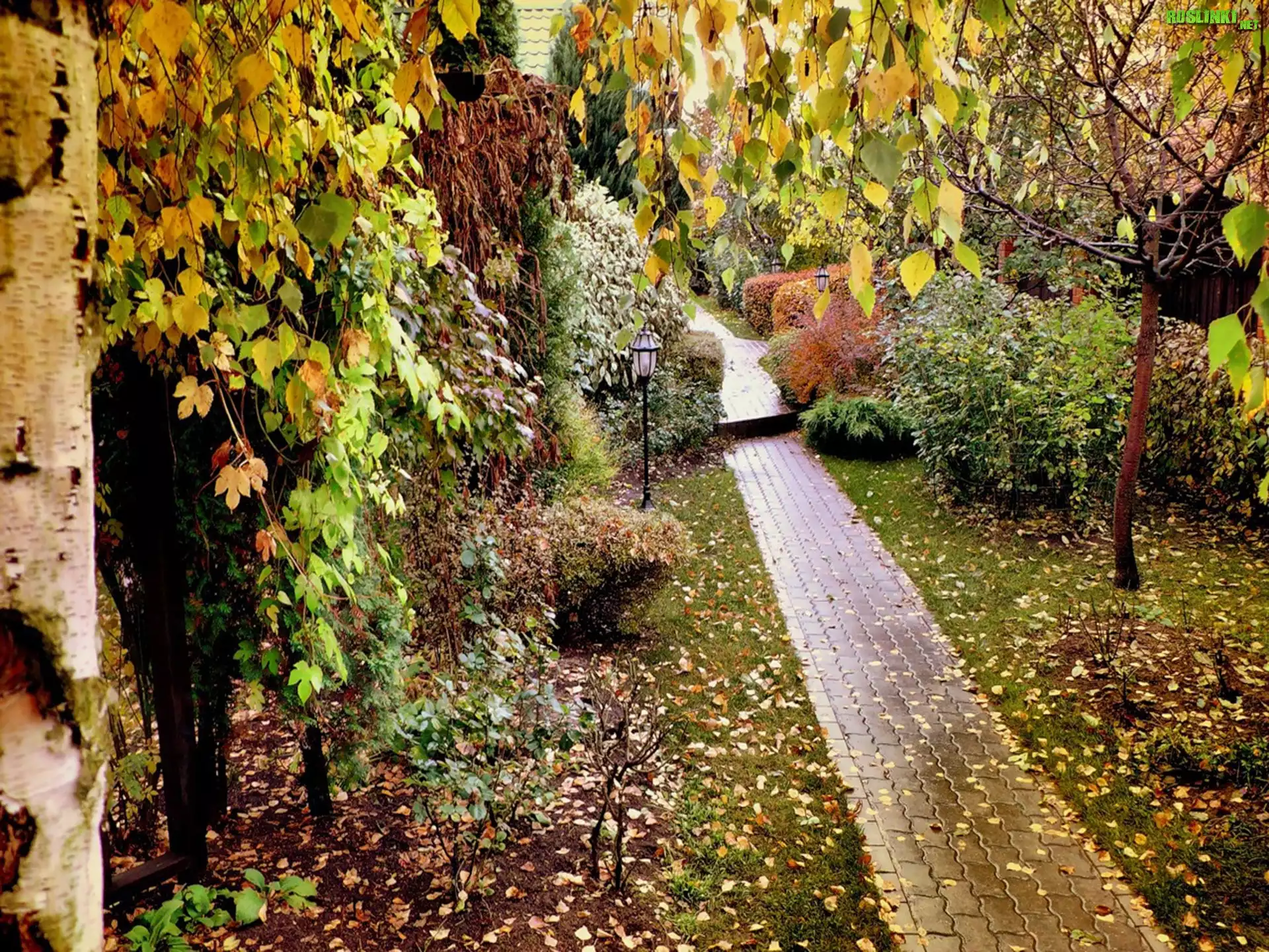 Rośliny: Park, Dróżka, Liście, Drzewa, Jesień