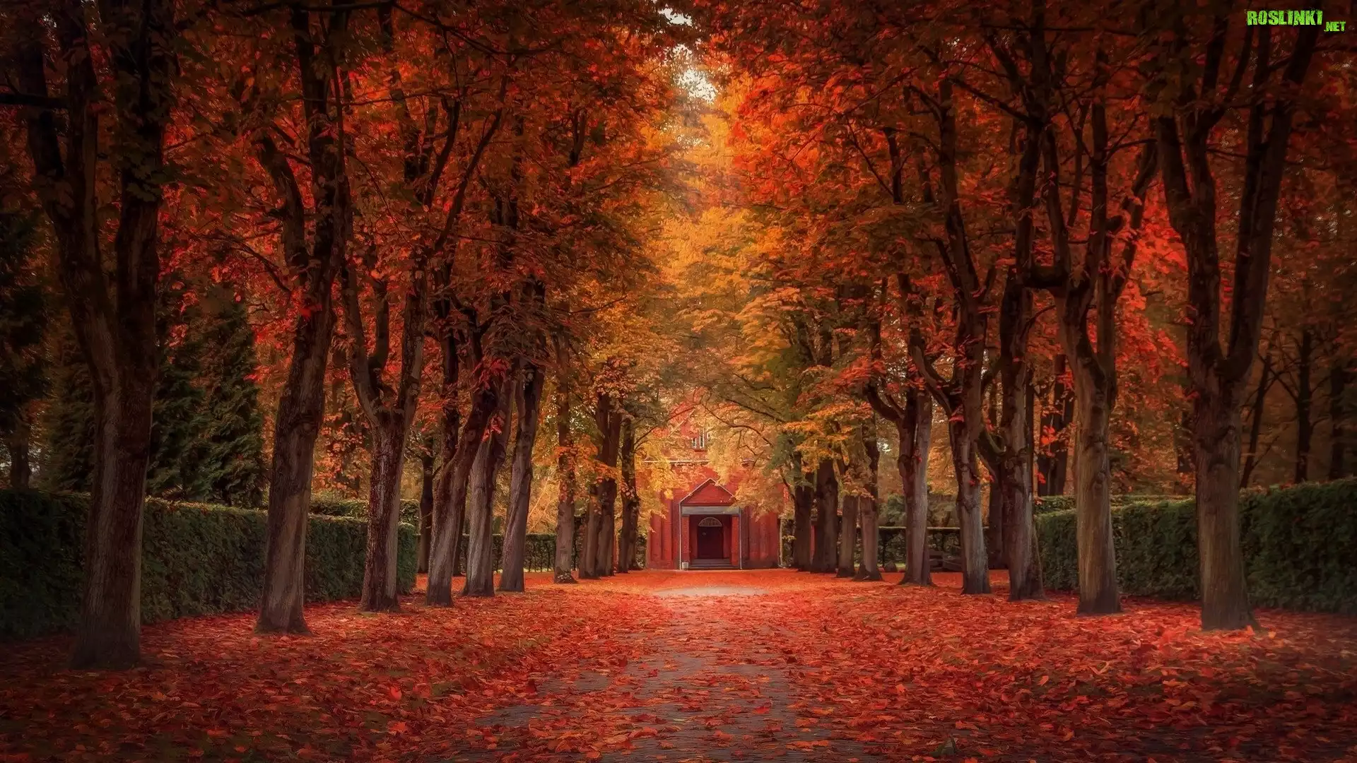 Rośliny: Park, Aleja, Drzewa, Jesień, Liście