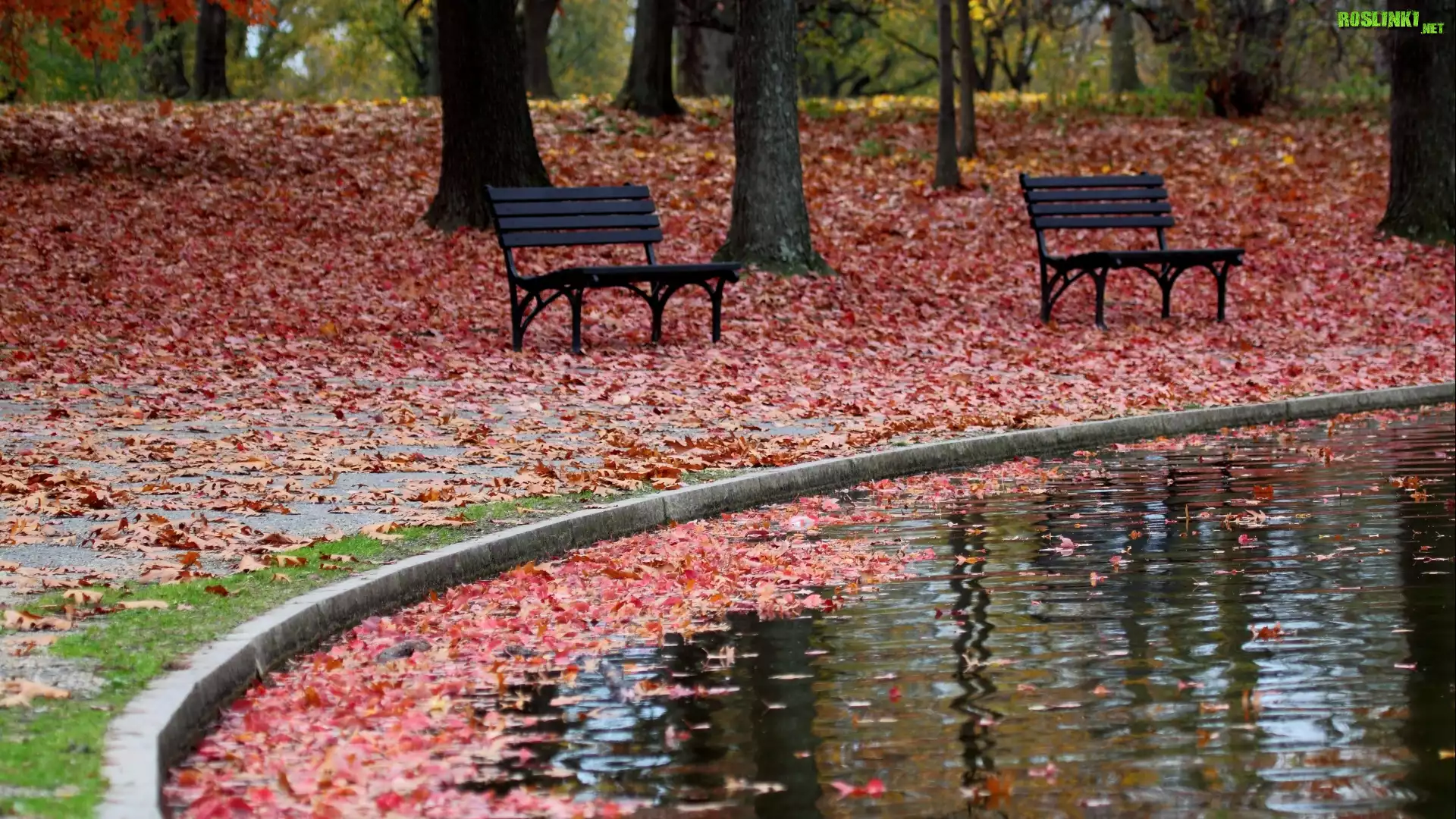Rośliny: Jesień, Park, Ławki, Liście, Zbiornik, Wodny, Drzewa