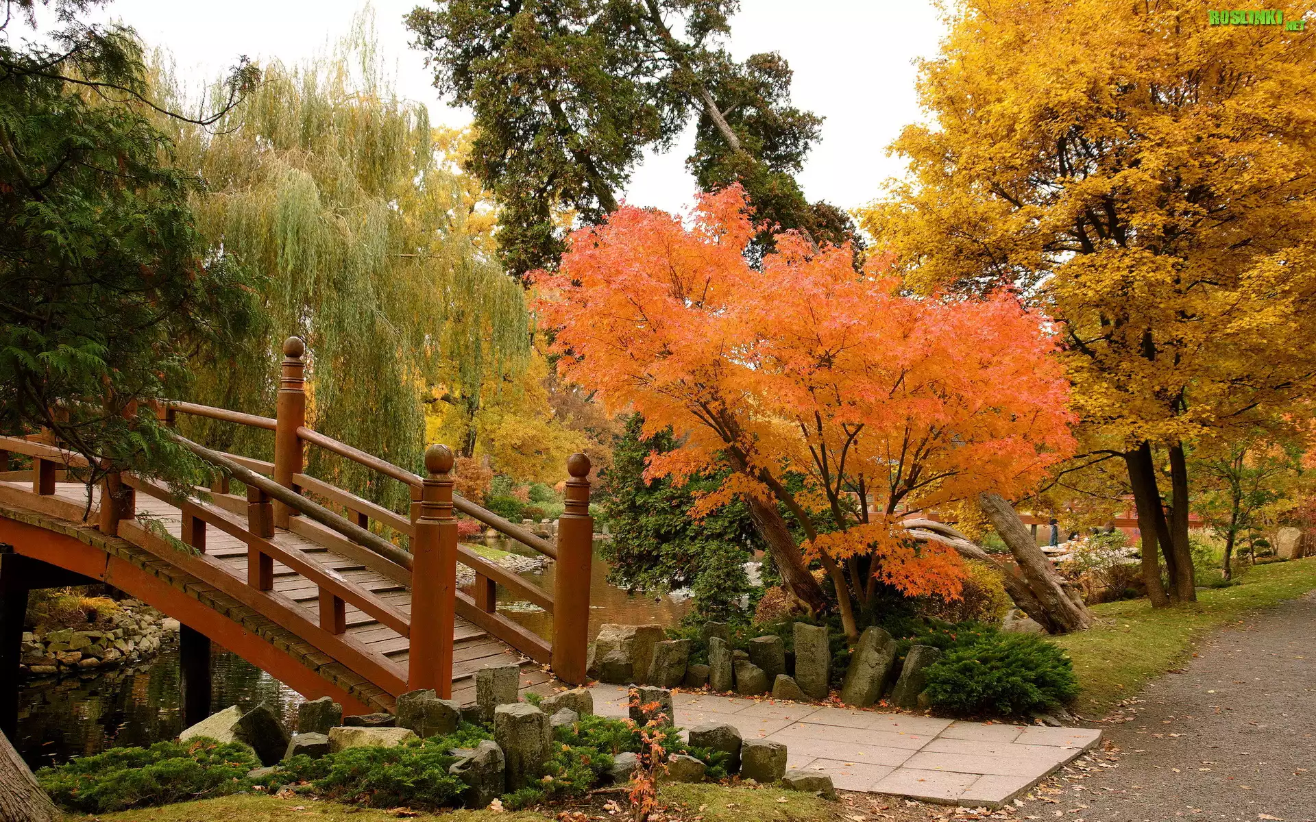 Rośliny: Park, Mostek, Jesienne, Drzewa