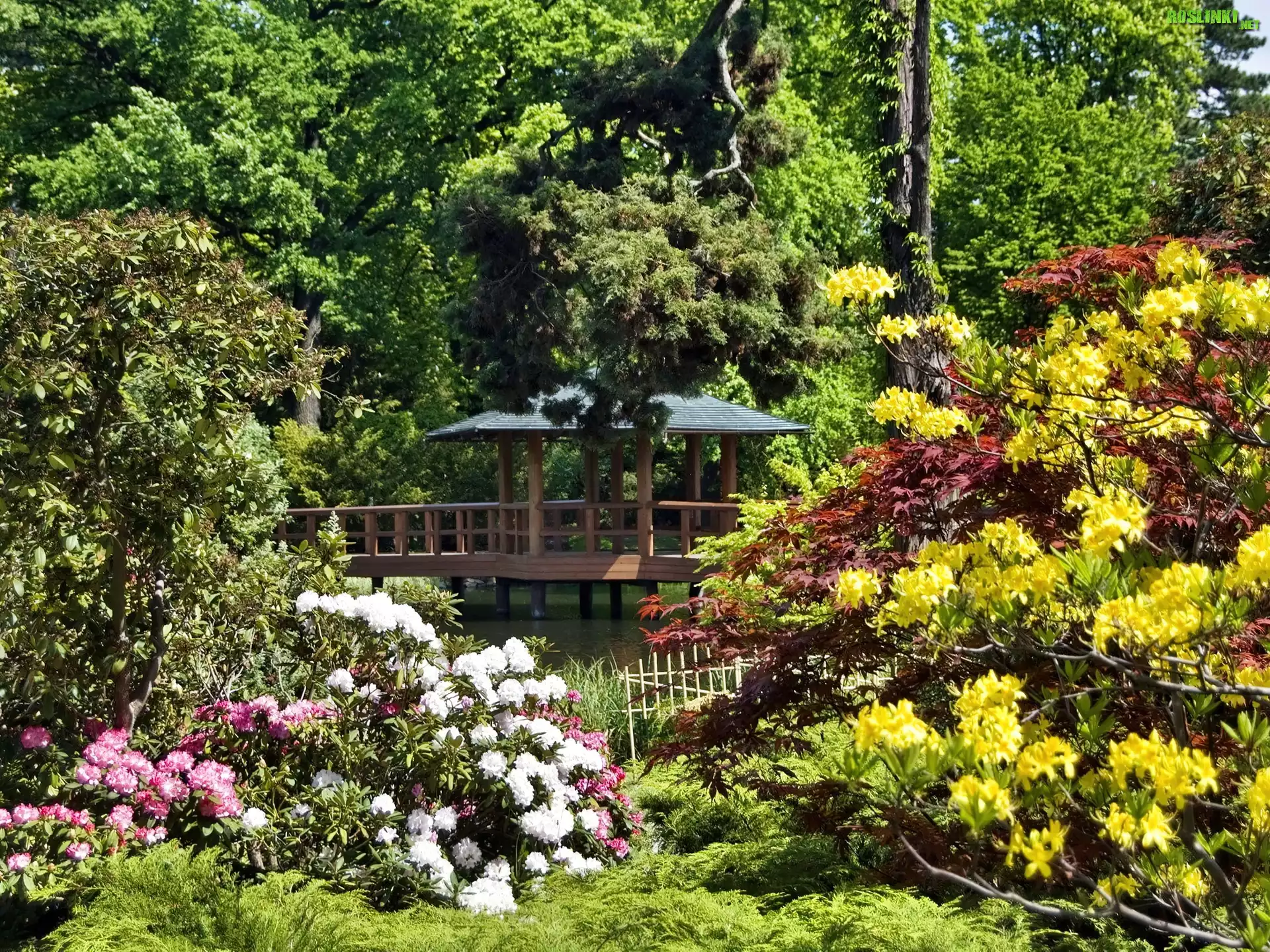 Rośliny: Park, Altana, Kolorowe, Rododendrony