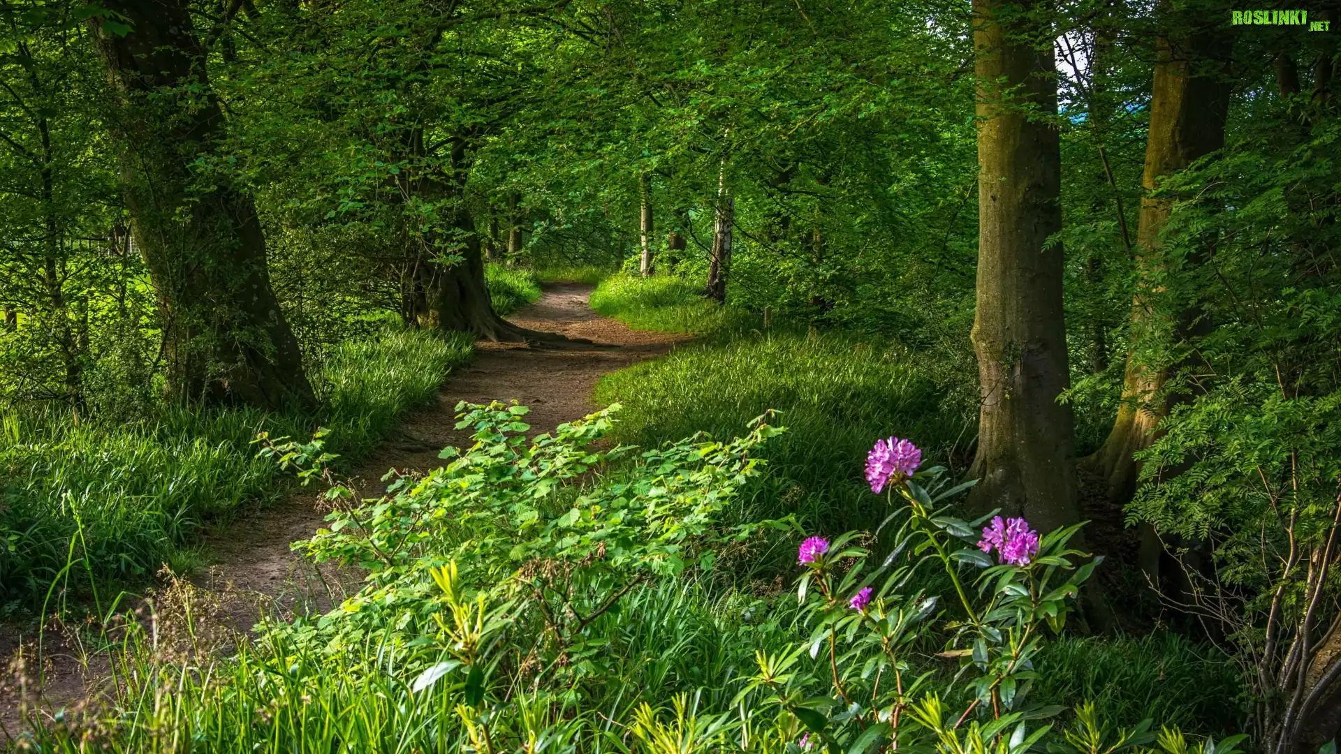 Rośliny: Park, Ścieżka, Drzewa, Rośliny, Kwiaty, Różanecznik