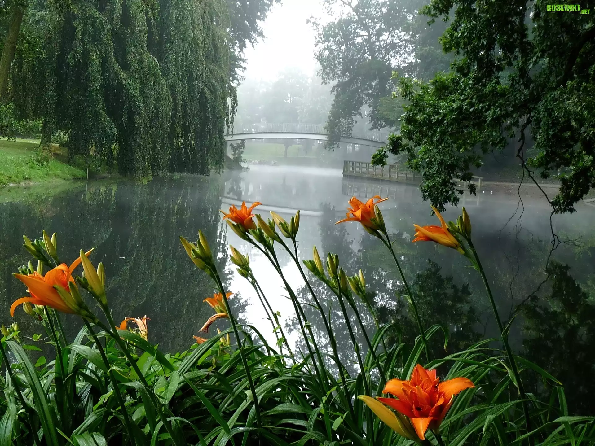 Rośliny: Park, Jeziorko, Kwiaty, Drzewa