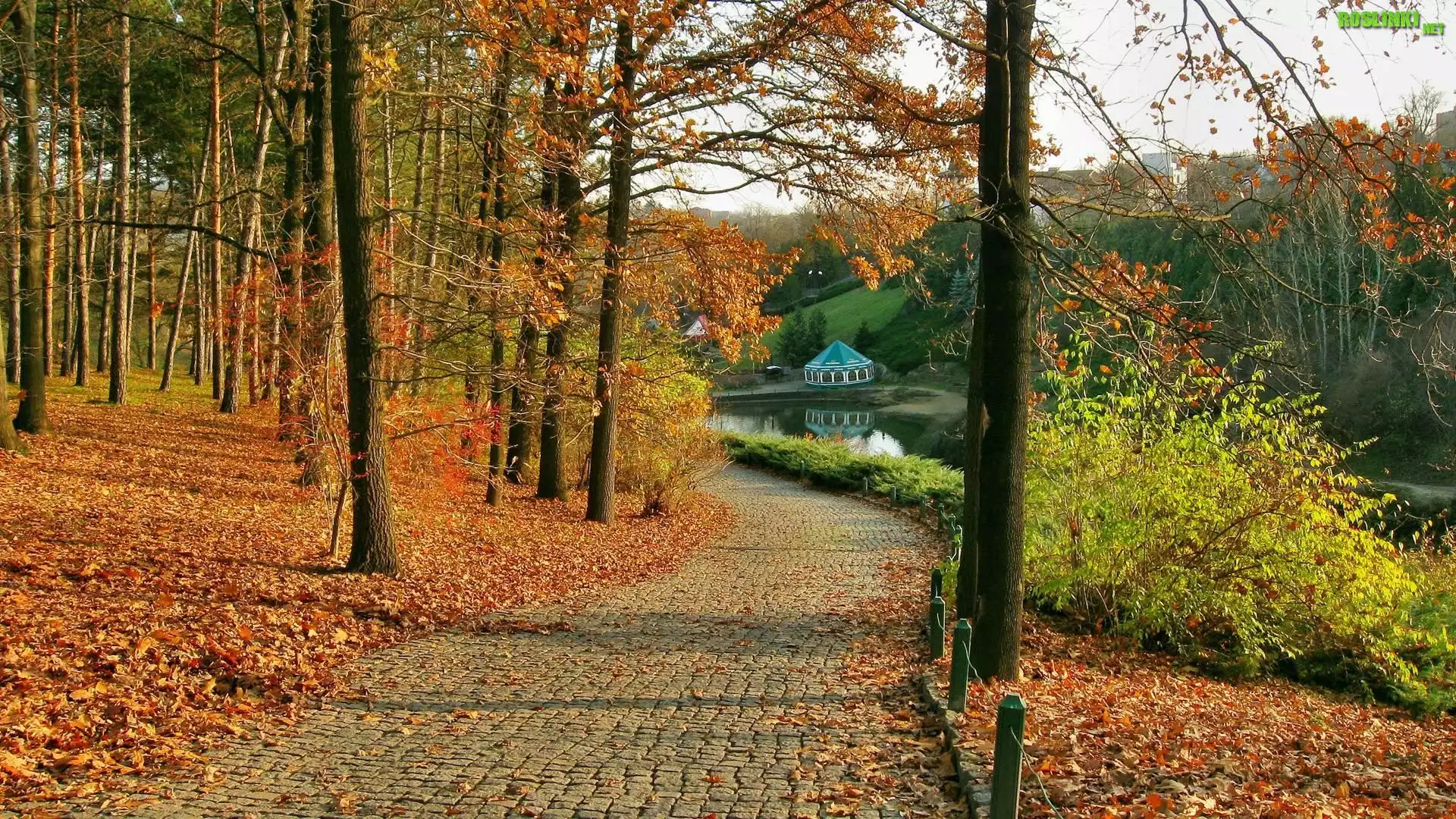 Rośliny: Park, Jesień, Drzewa, Liście, Droga