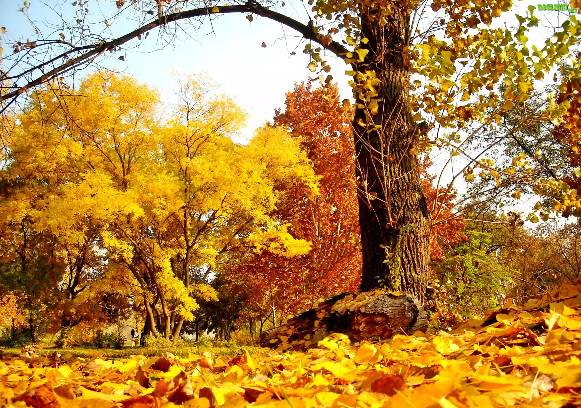 Rośliny: Park, Kolorowe, Drzewa, Liście, Jesień