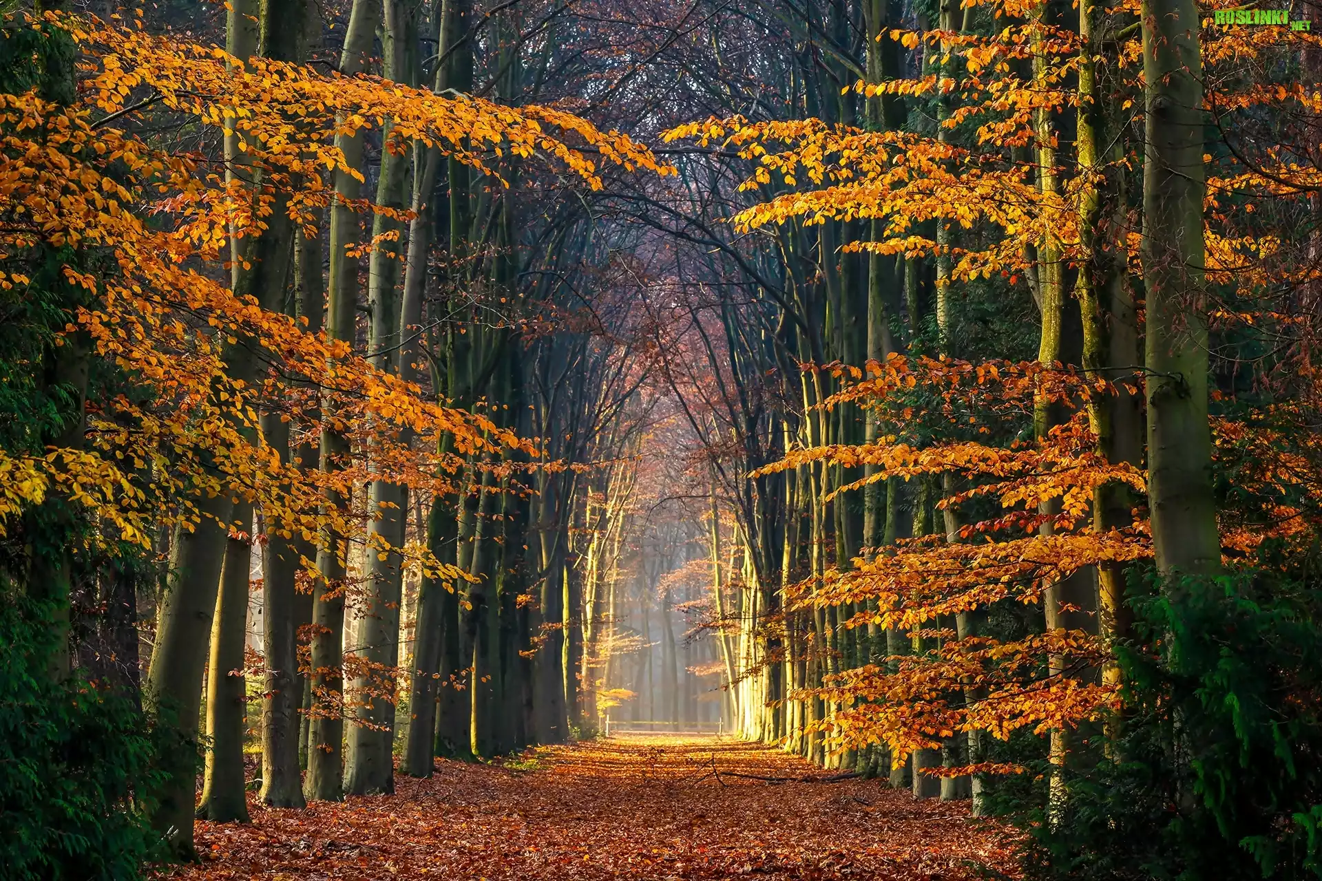 Rośliny: Park, Aleja, Drzewa, Opadłe, Liście, Jesień