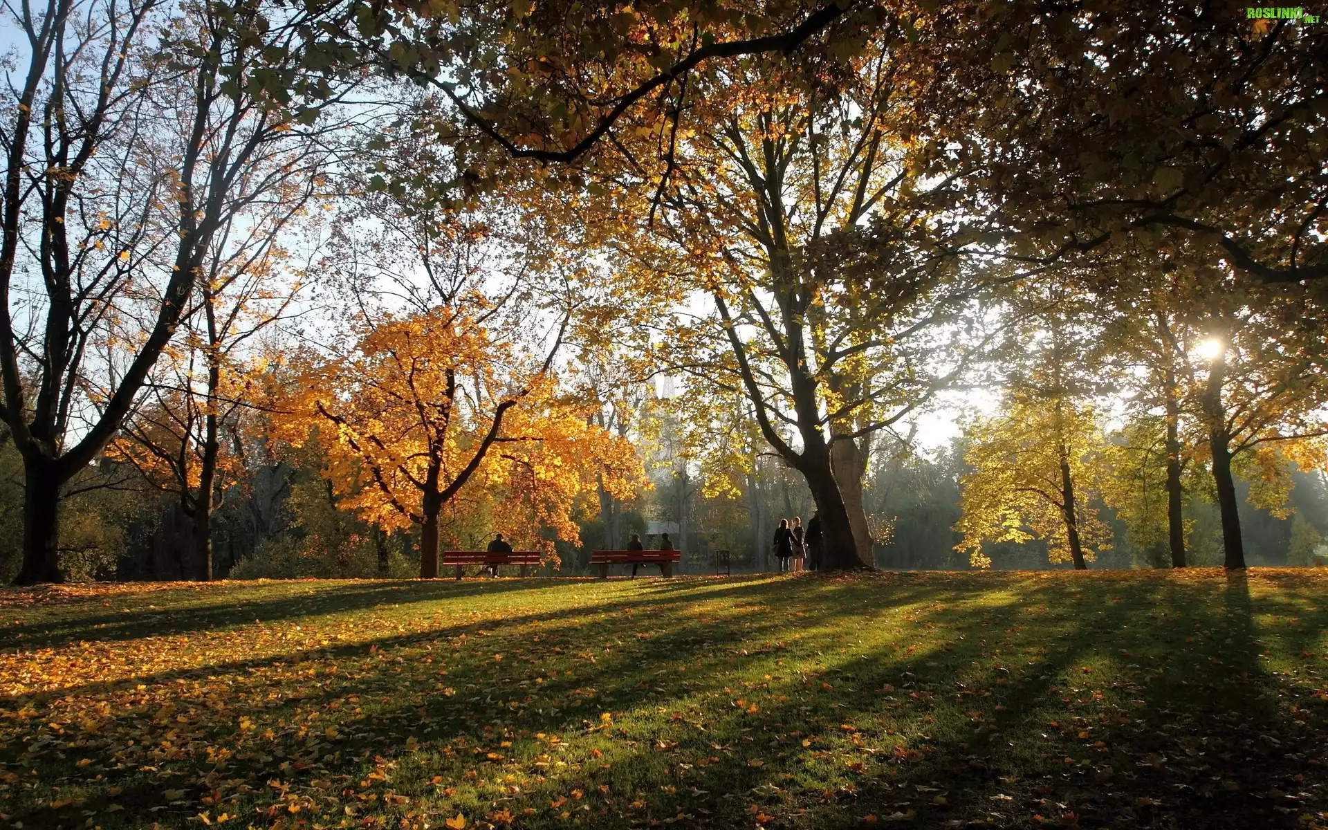 Rośliny: Park, Ludzie, Przebijające, Światło, Liście, Jesień