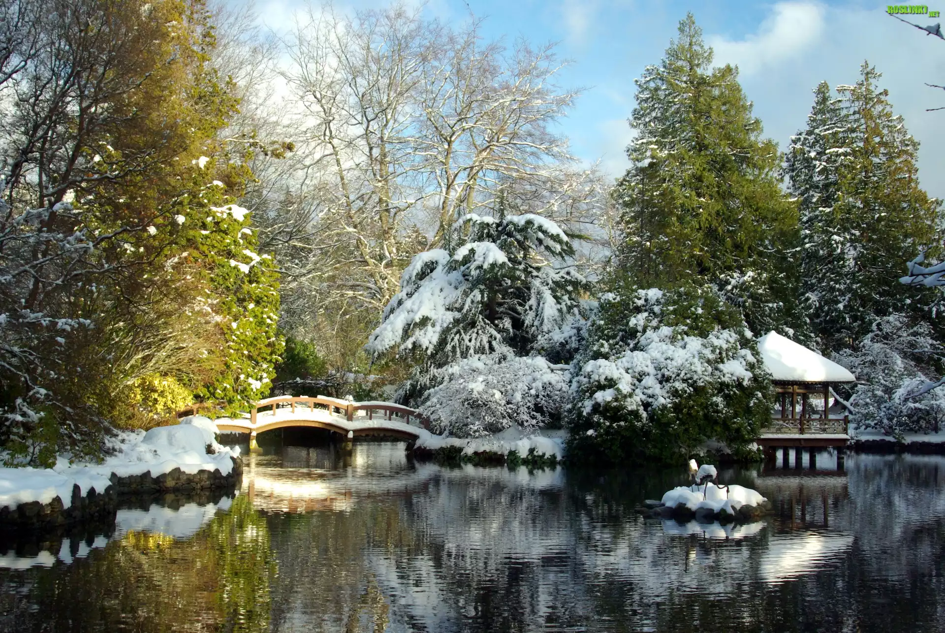 Rośliny: Park, Rzeka, Most, Zima
