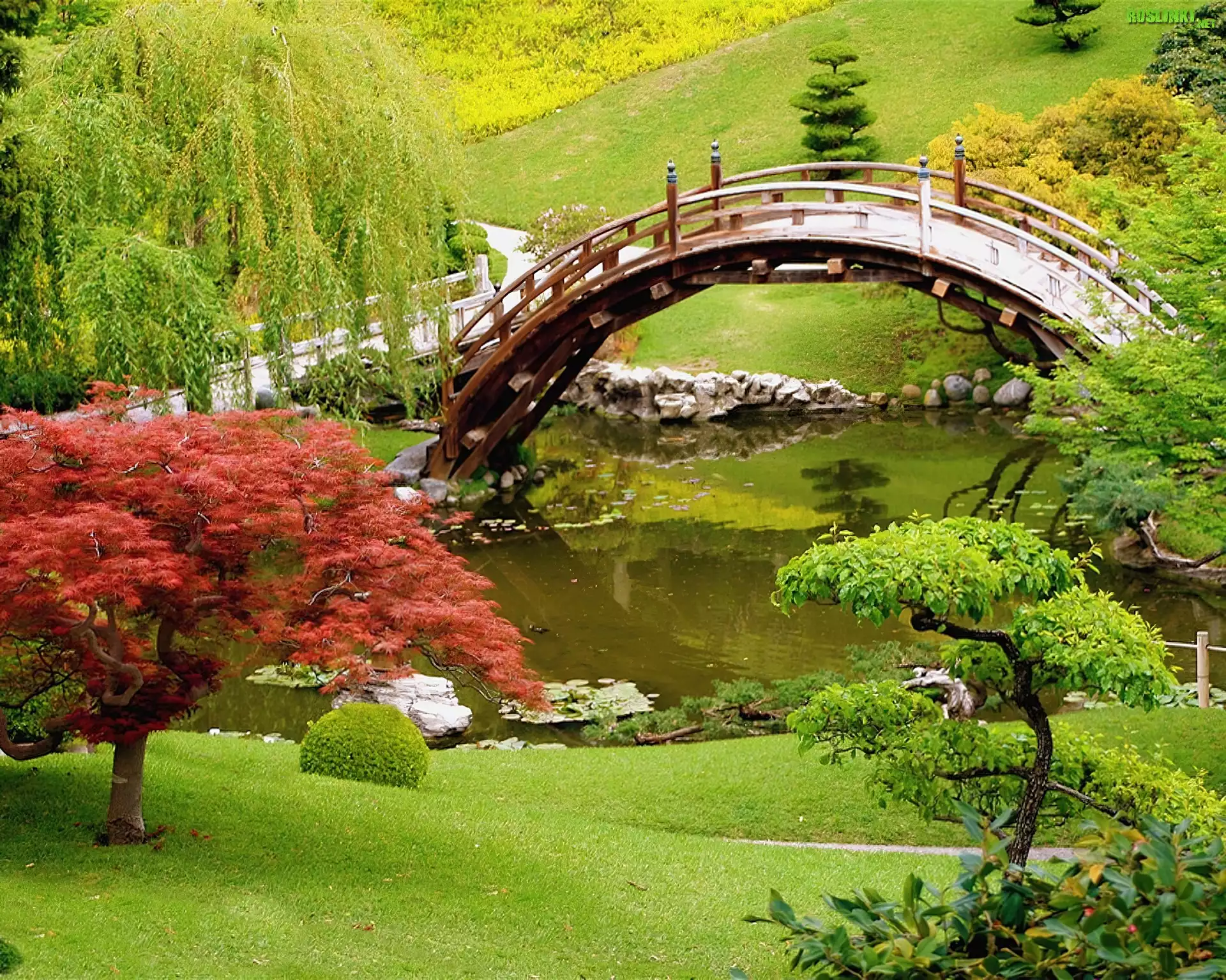 Rośliny: Park, Japoński, Mostek, Staw