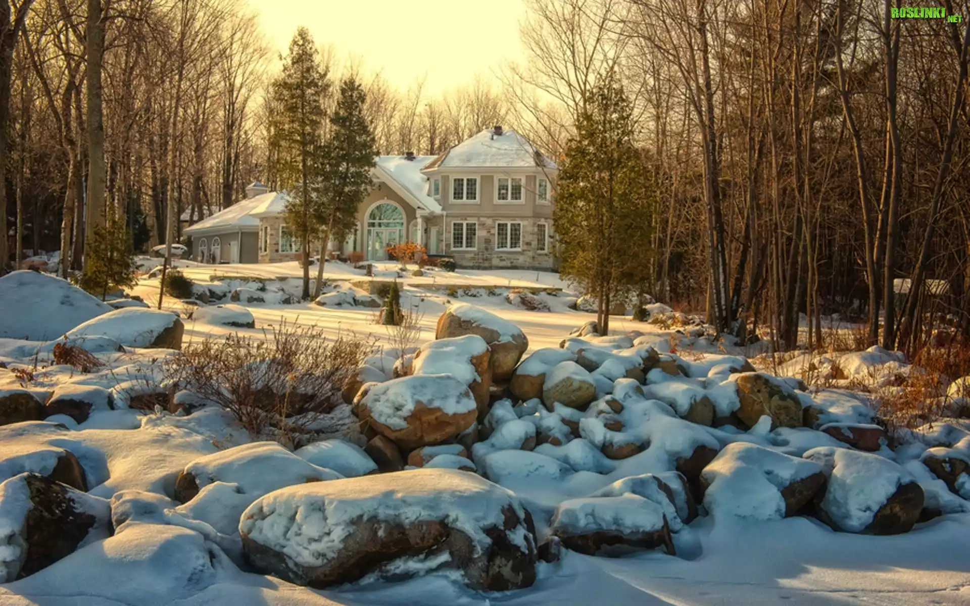 Rośliny: Park, Budynek, Kamienie, Śnieg, Drzewa