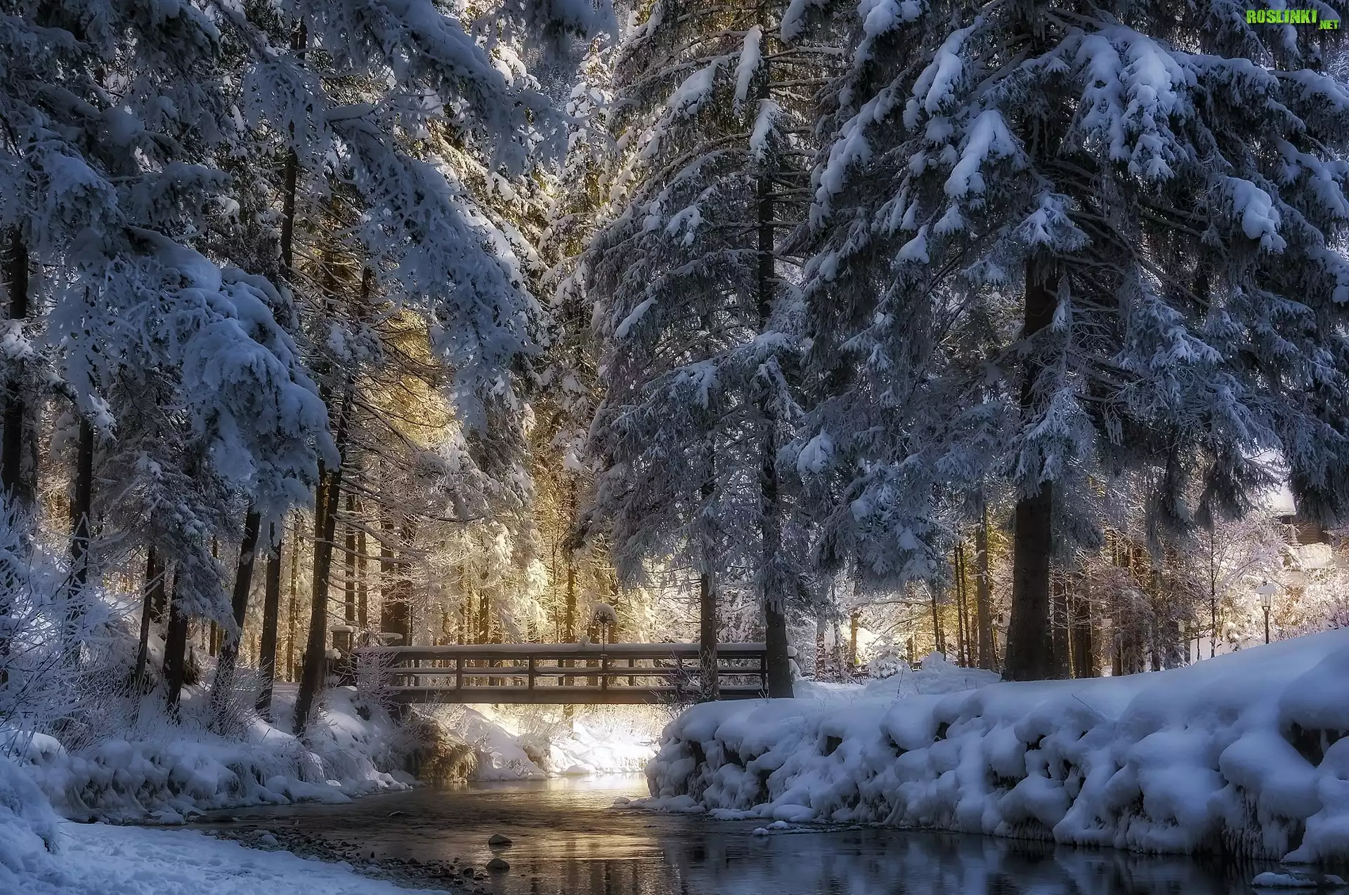 Rośliny: Park, Zima, Most, Rzeczka, Ośnieżone, Drzewa