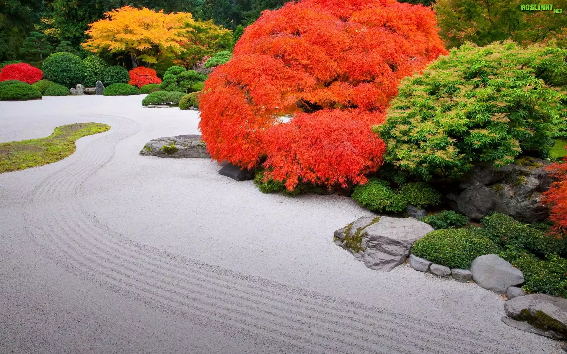 Rośliny: Park, Drzewa, Kamienie, Piasek, Klomby