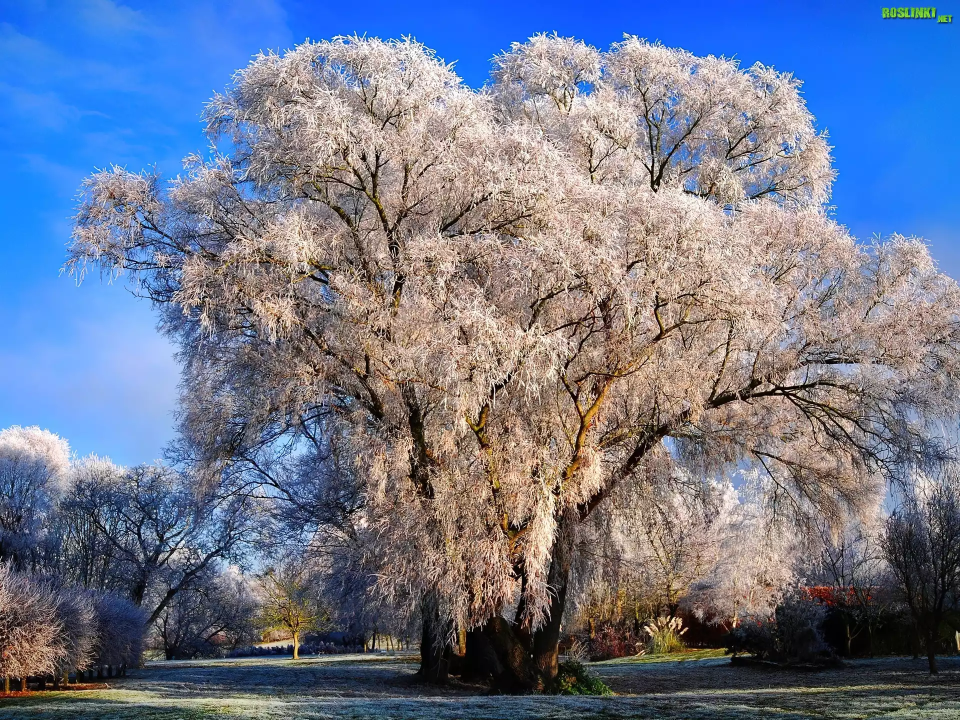 Rośliny: Park, Drzewa, Pierwszy, Szron