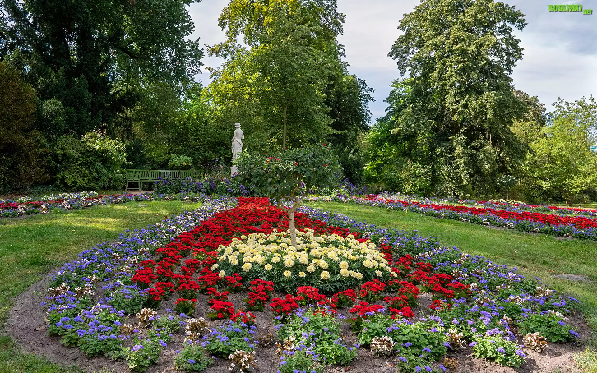 Rośliny: Park, Kwiaty, Drzewa, Rabaty, Posąg, Ławki