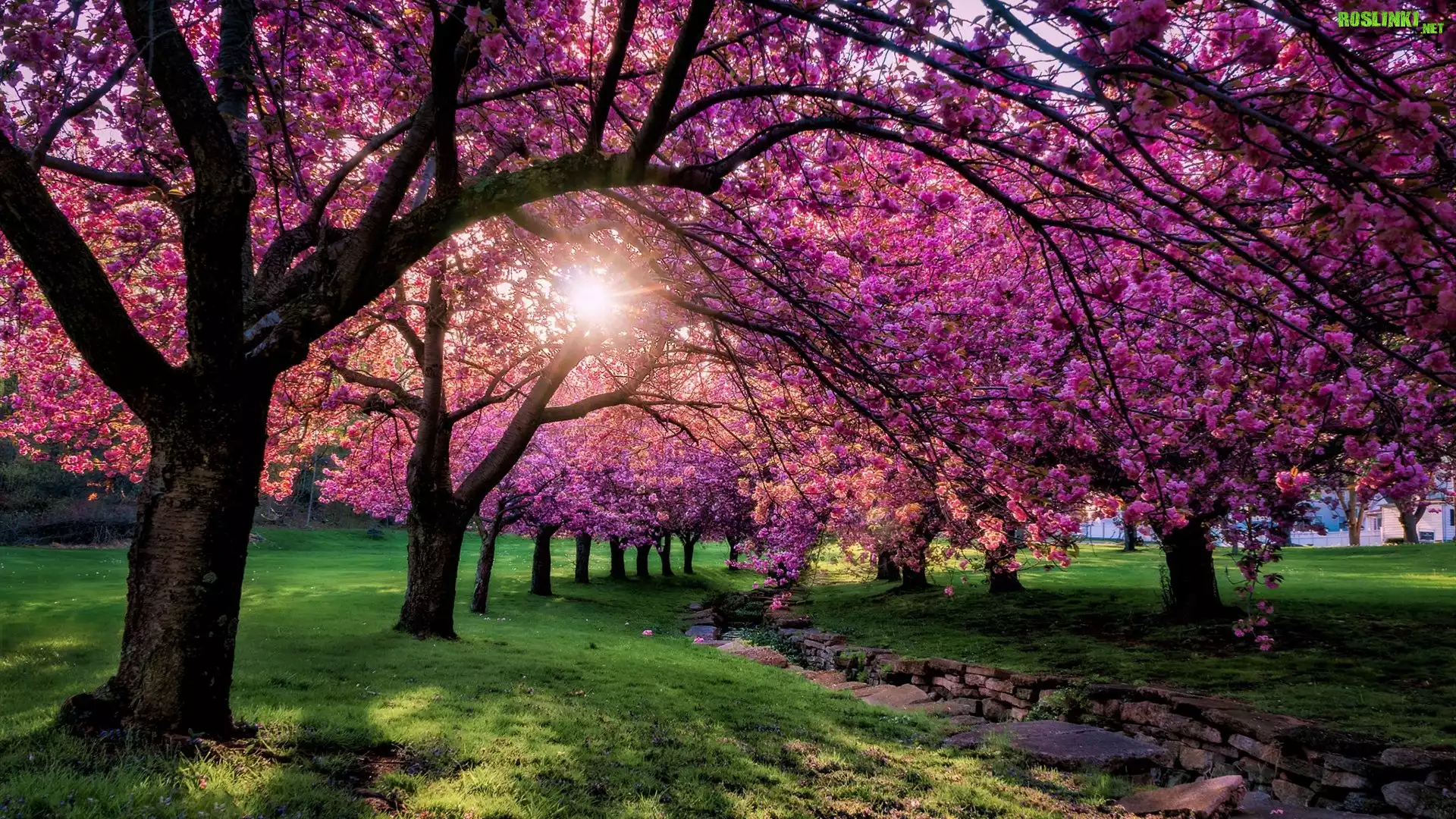 Rośliny: Park, Wiosna, Drzewa, Promienie słońca