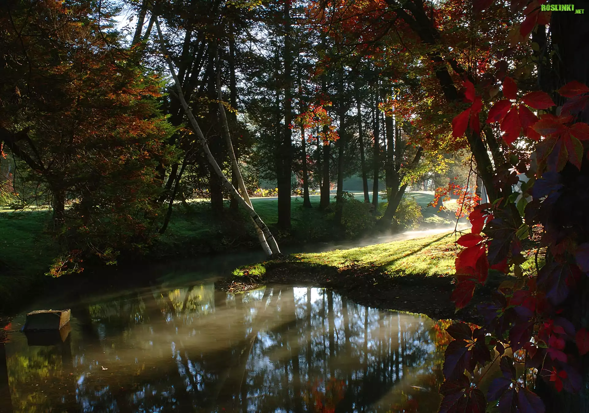 Rośliny: Park, Drzewa, Przebijające, Światło