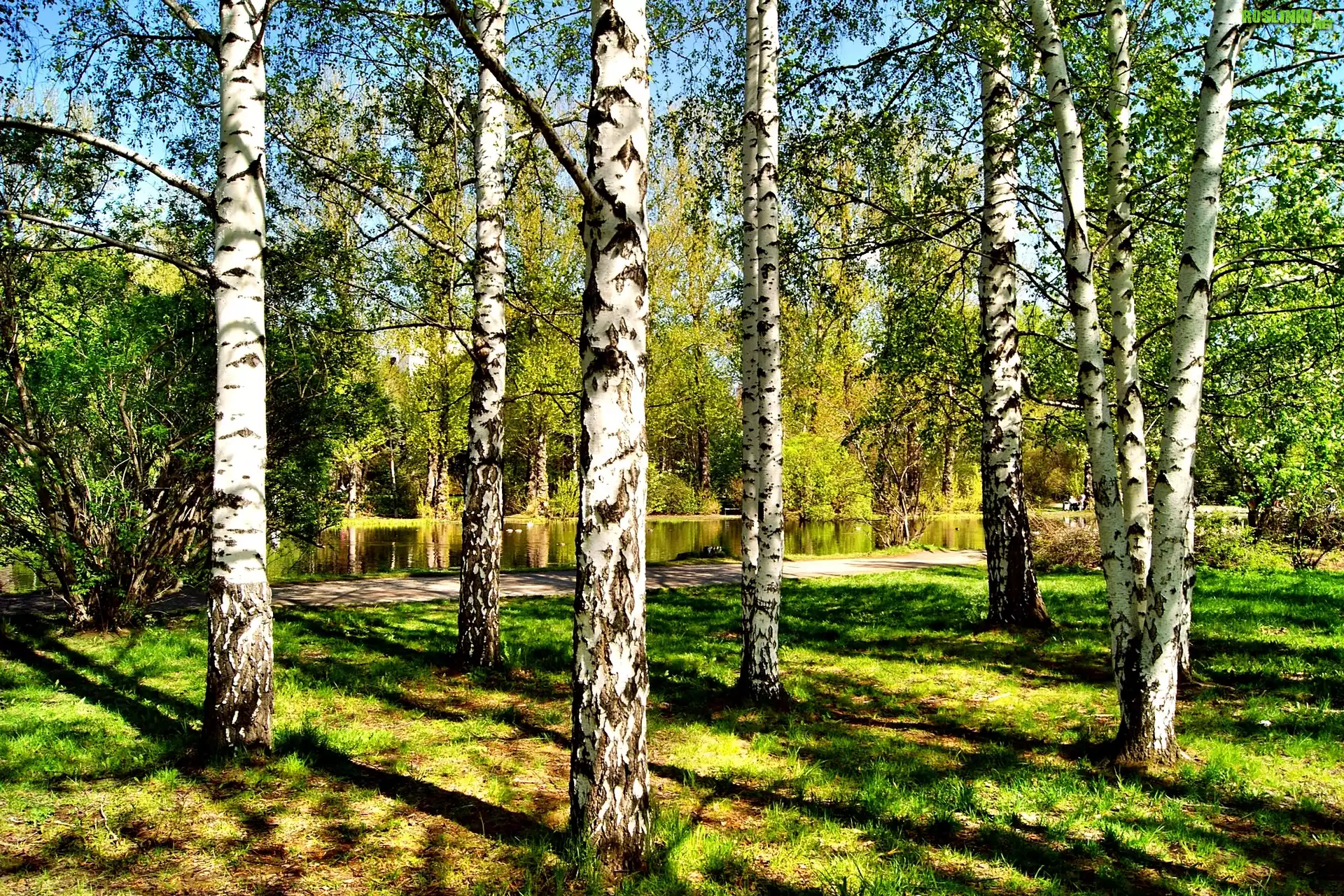 Rośliny: Park, Brzozy, Rzeka, Lato