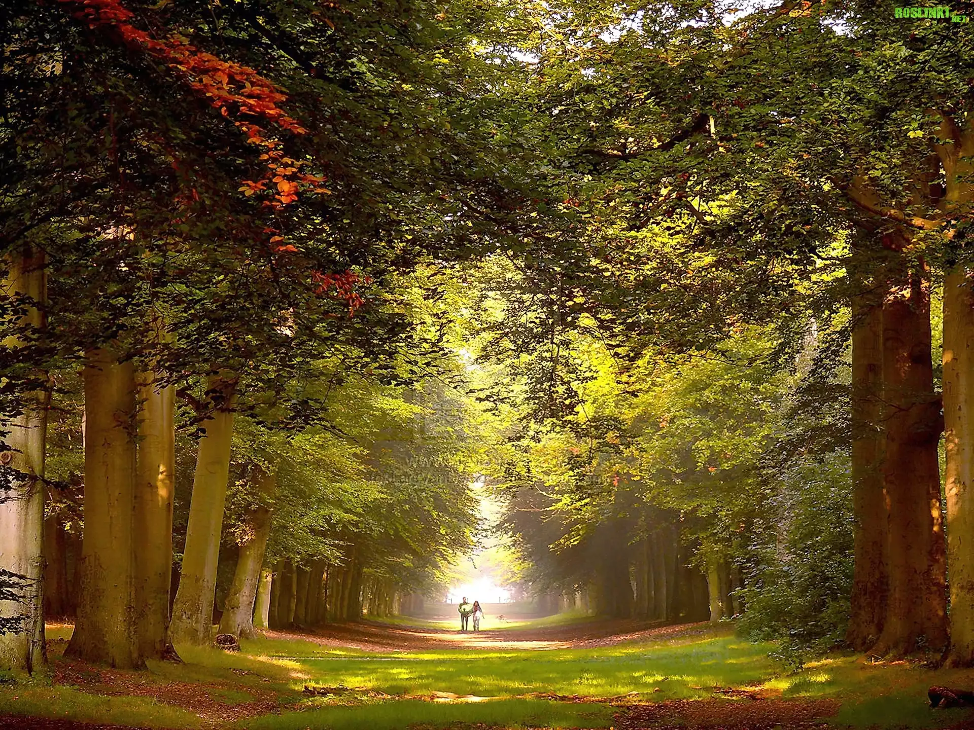 Rośliny: Park, Aleja, Drzew, Spacerująca, Para