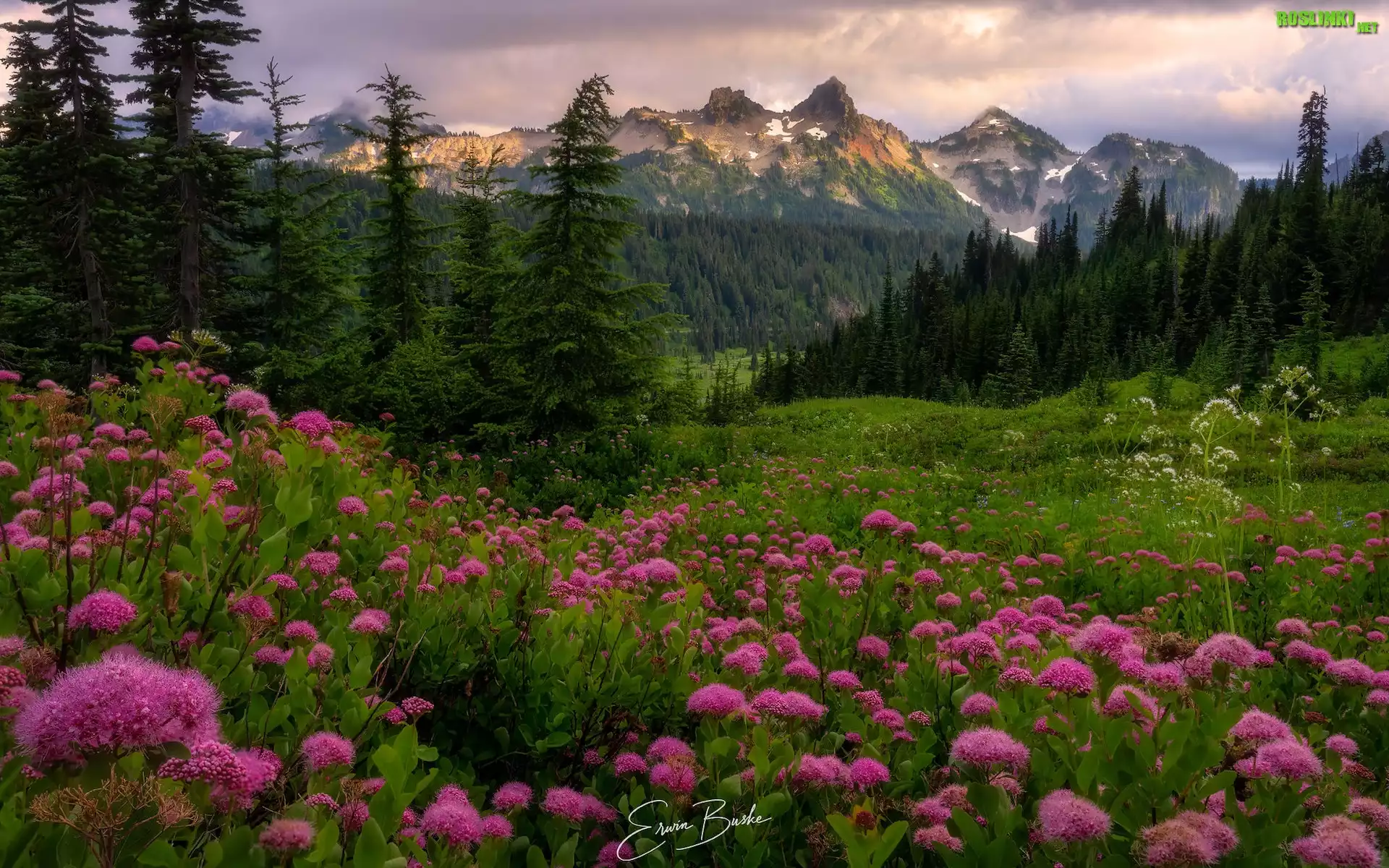 Park Narodowy Mount Rainier, Góry, Tatoosh Range, Łąka, Kwiaty, Tawuła, Drzewa, Stan Waszyngton, Stany Zjednoczone |