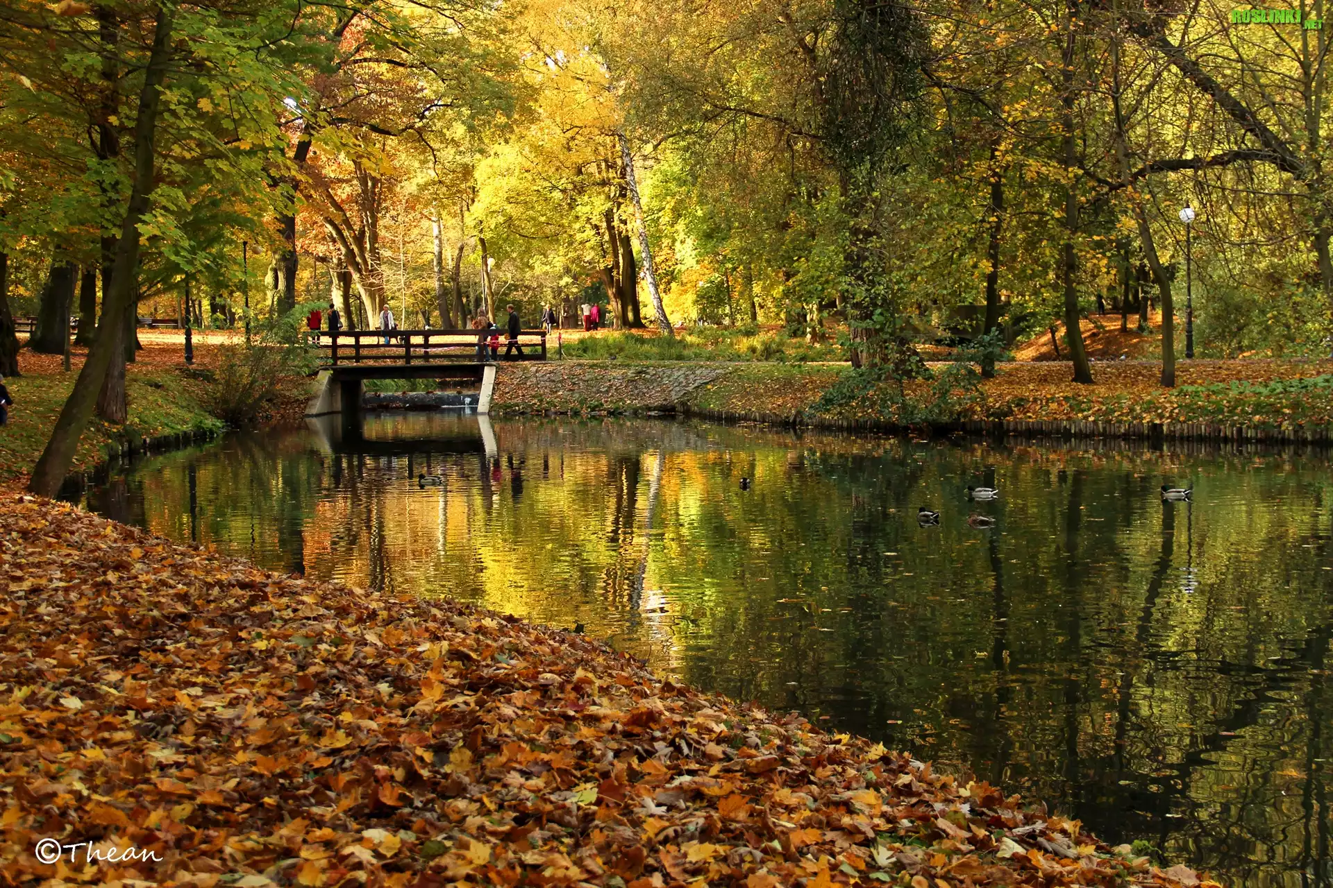 Rośliny: Park, Drzewa, Jezioro, Jesień, Suche, Liście