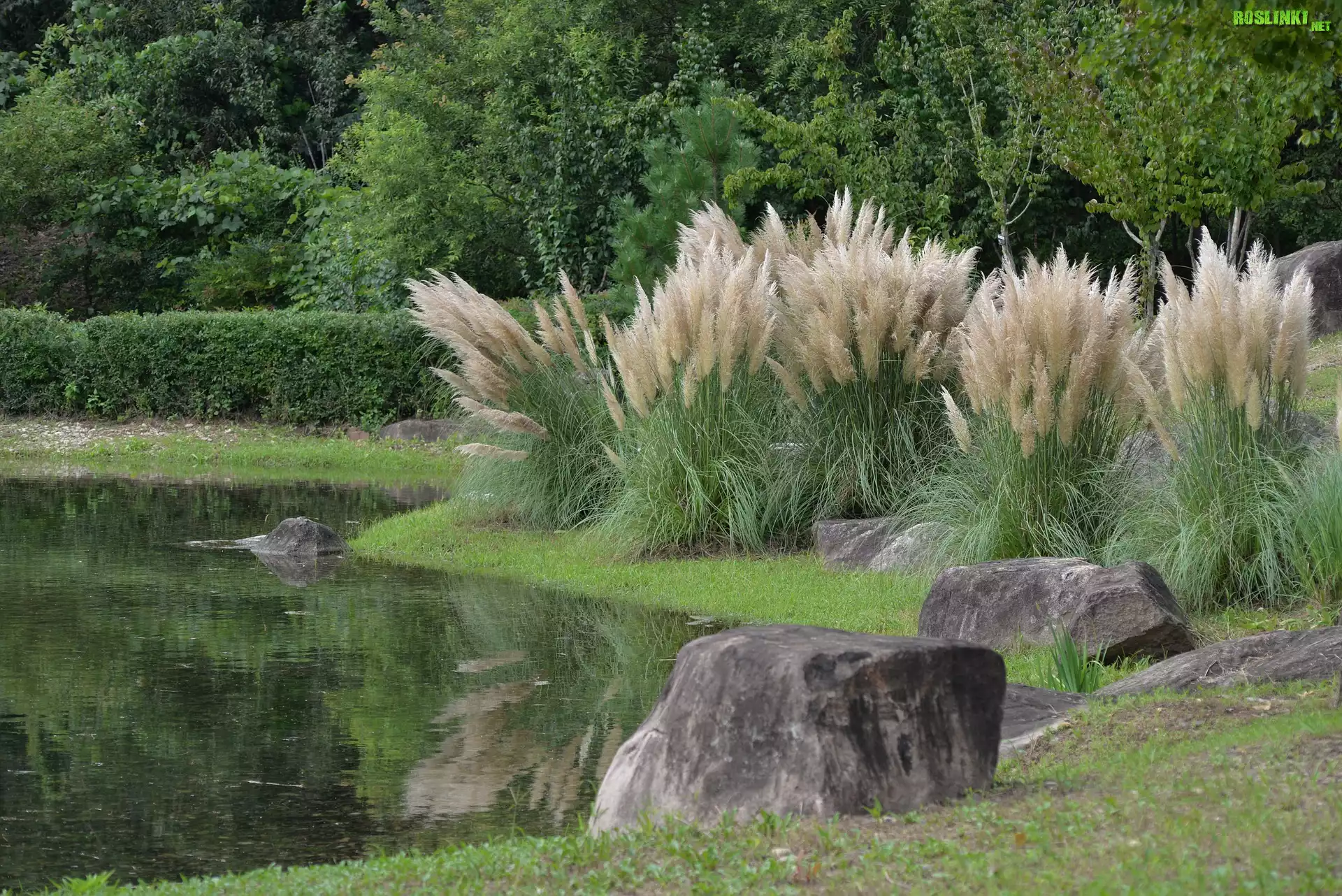 Rośliny: Trawa pampasowa, Staw, Park