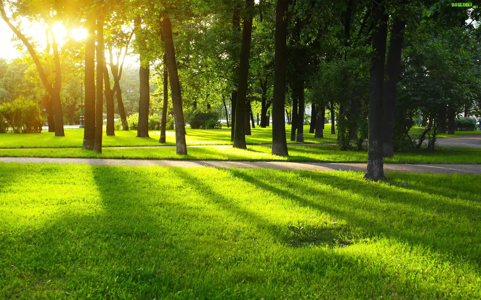 Rośliny: Park, Drzewa, Zielona, Trawa, Lato