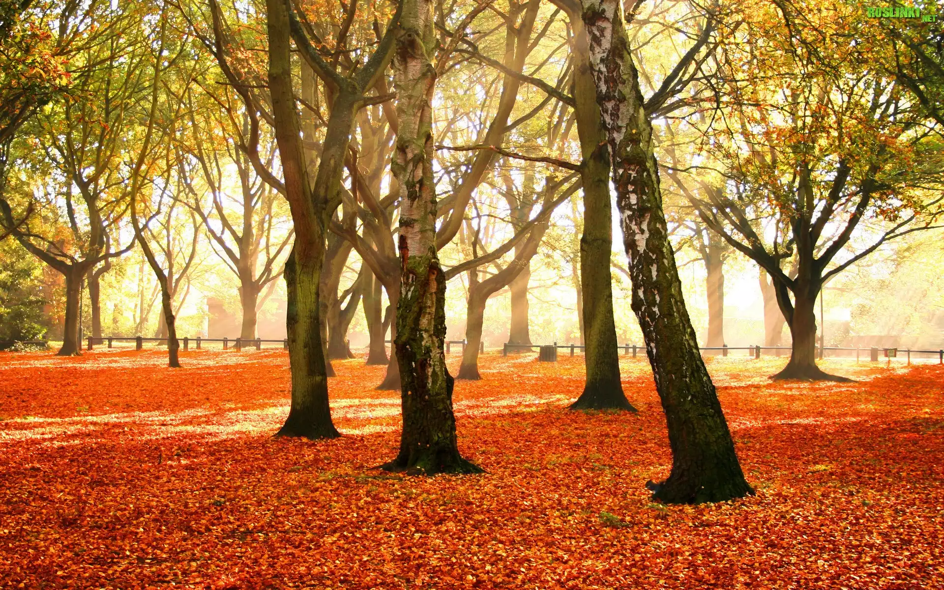 Rośliny: Park, Liście, Przebijające, Światło, Jesień