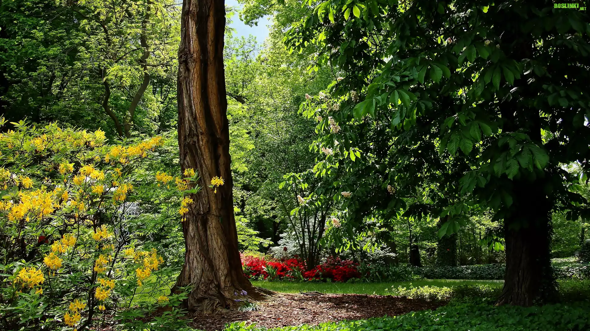 Rośliny: Wiosna, Park, Drzewa, Różanecznik