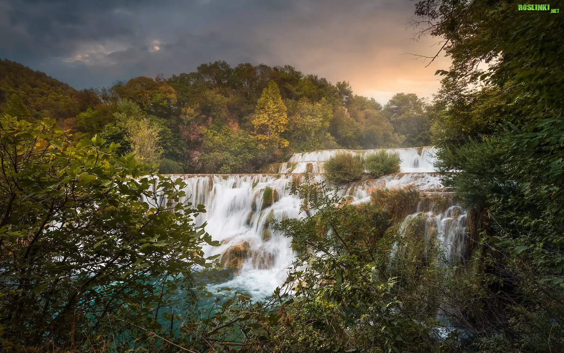 Drzewa, Krzewy, Wodospad, Park Narodowy Krka, Chorwacja
