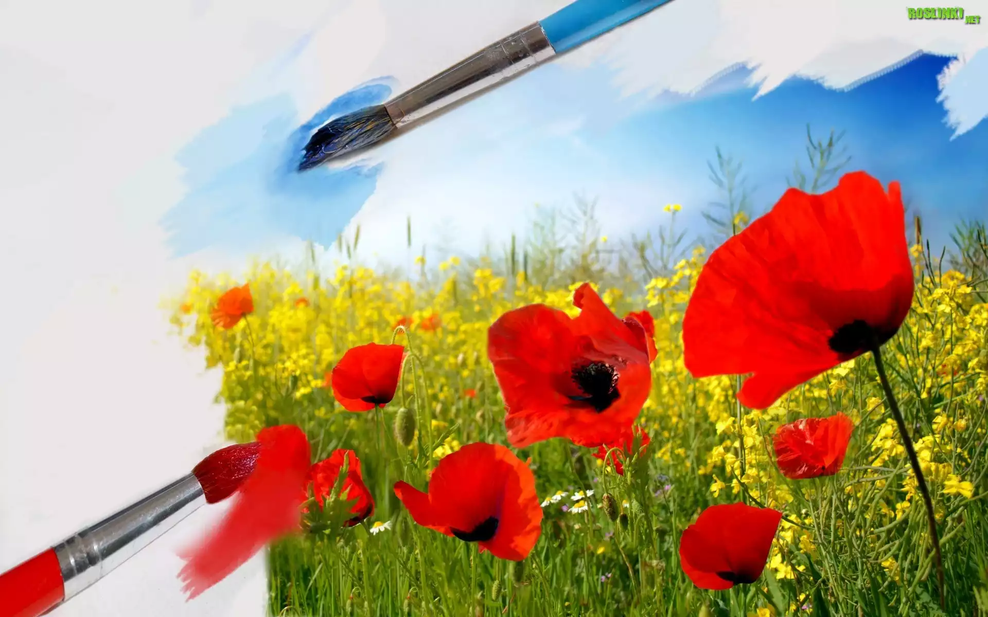 Rośliny: Łąka, Maki, Trawy, Pędzle, Grafika