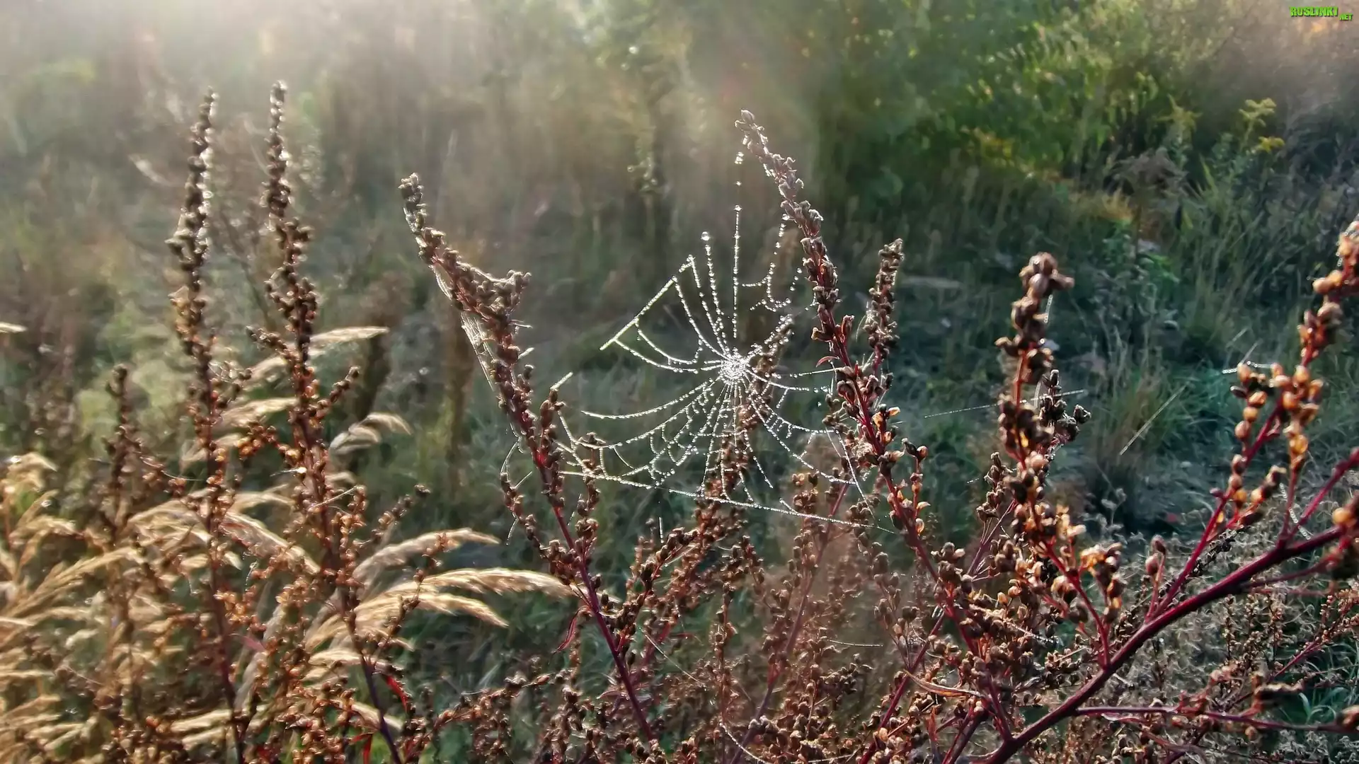 Rośliny: Perłowa, Pajęczyna, Zieleń, Rozmazane, Tło