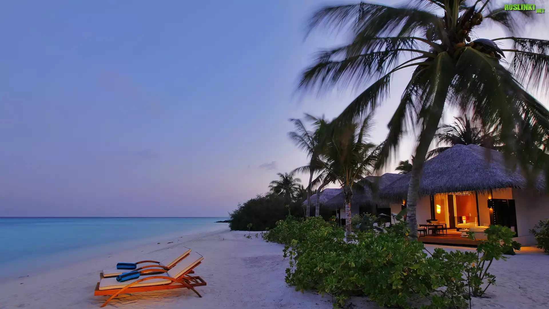 Rośliny: Piasek, Palmy, Leżaki, Domki, Wakacje