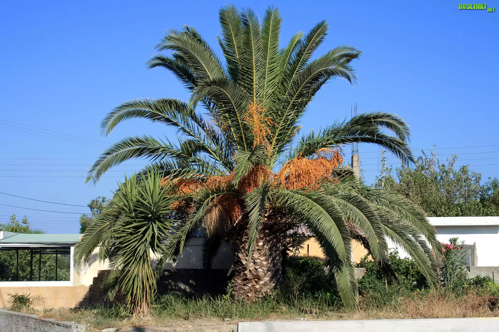 Rośliny: Piękna, Palma, Trawa, Murek
