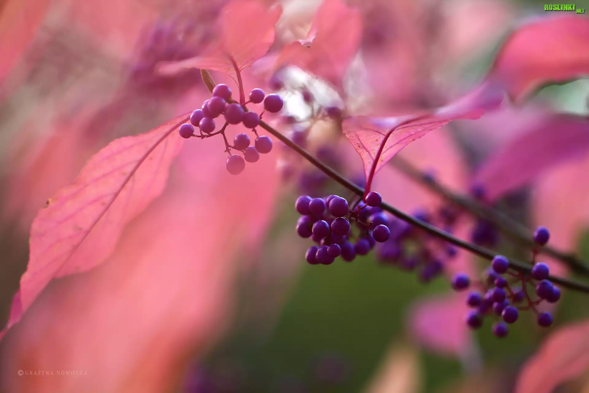 Pięknotka, Krzew, Fioletowe, Kulki, Różowe, Liście
