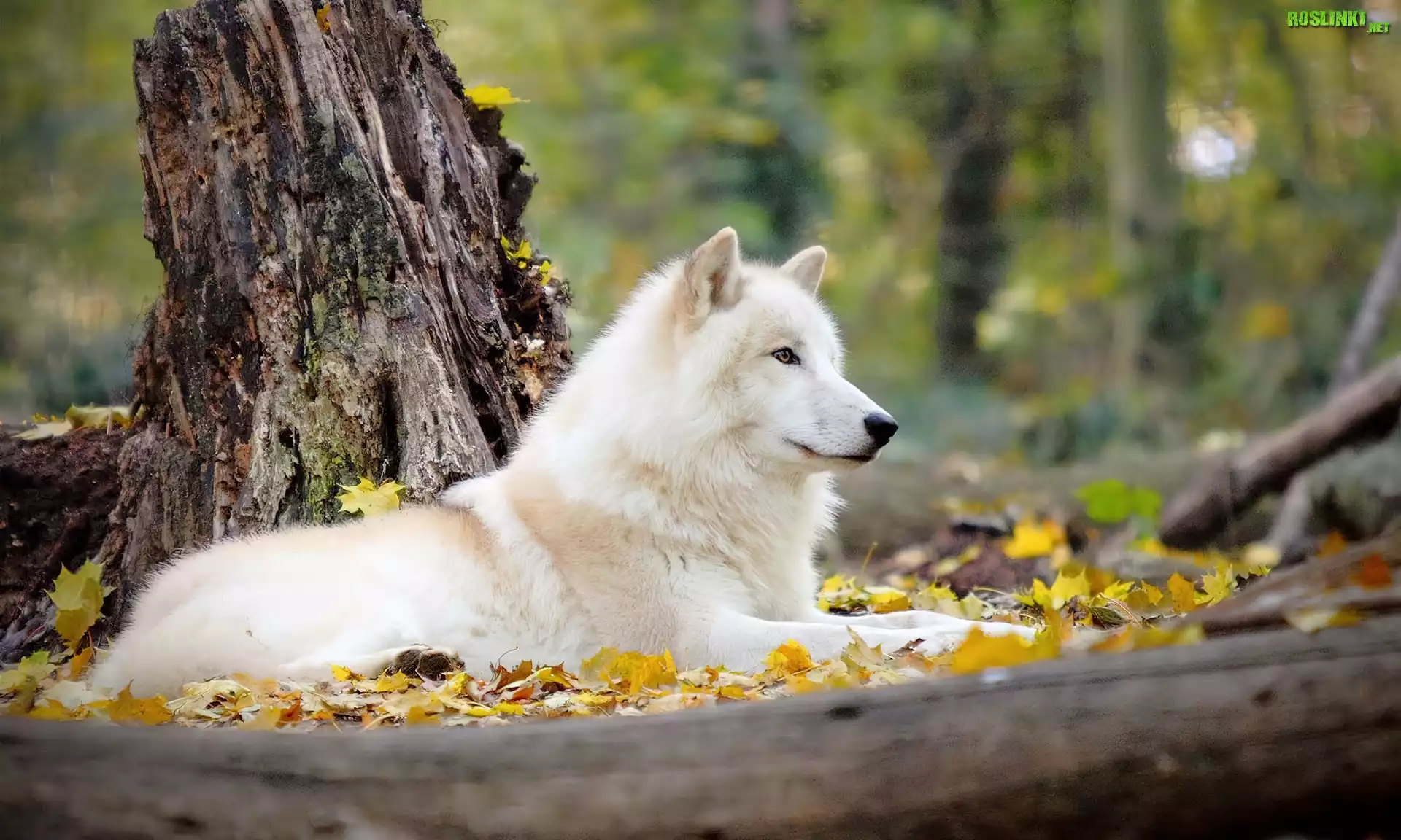 Rośliny: Pień, Drzewa, Liście, Jesień, Biały, Pies
