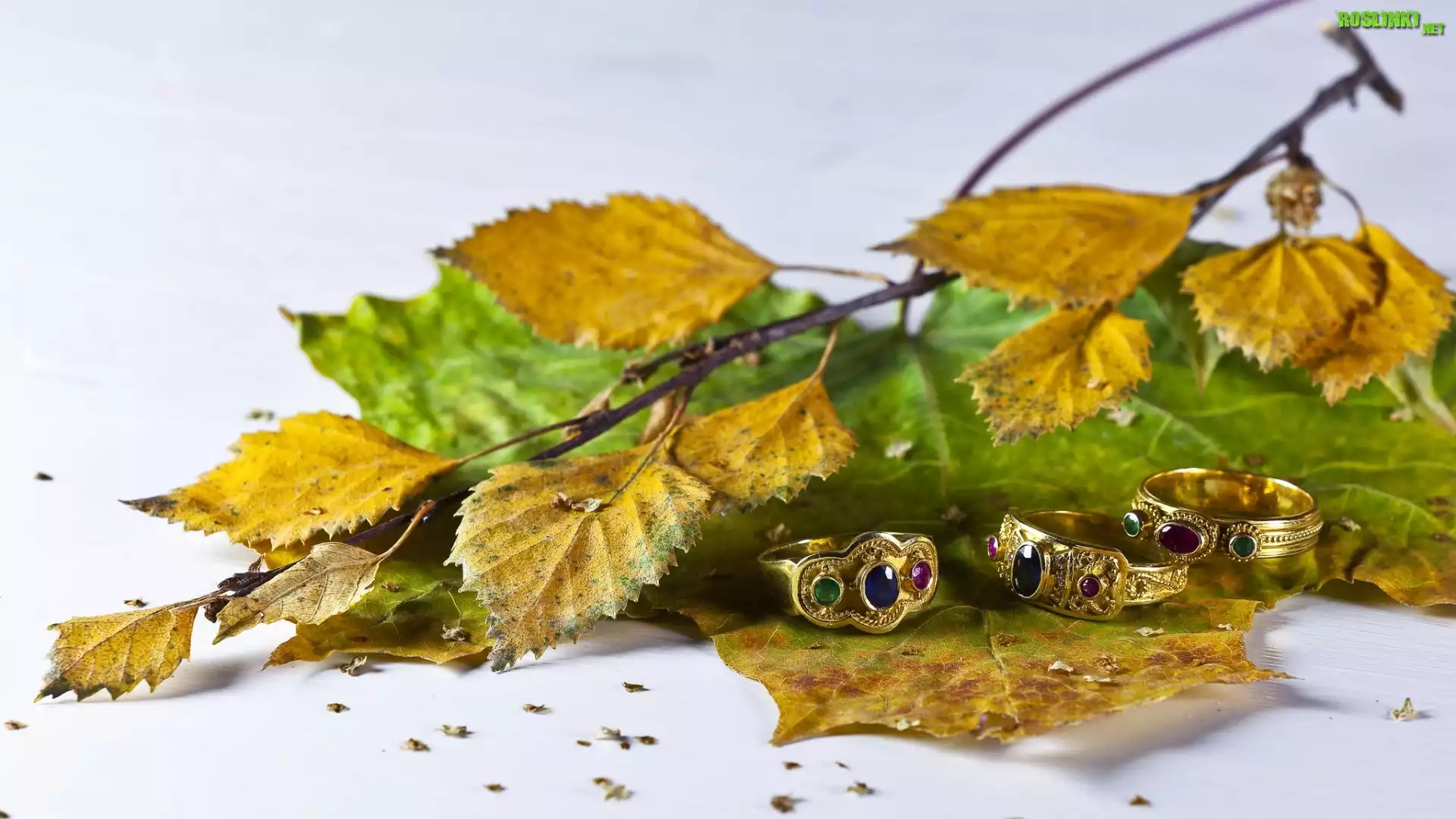 Pierścionki, Jesienna, Gałązka, Liście