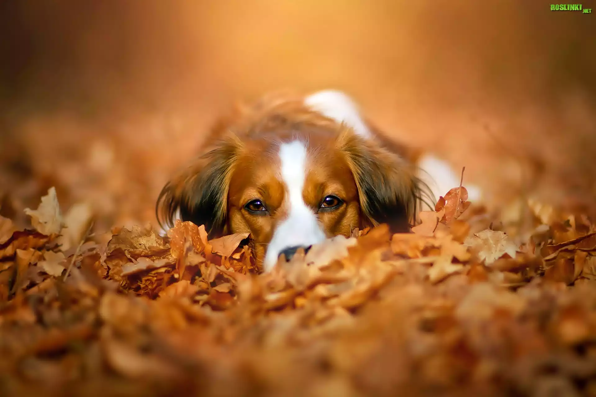 Pies, Płochacz, Holenderski, Jesienne, Liście