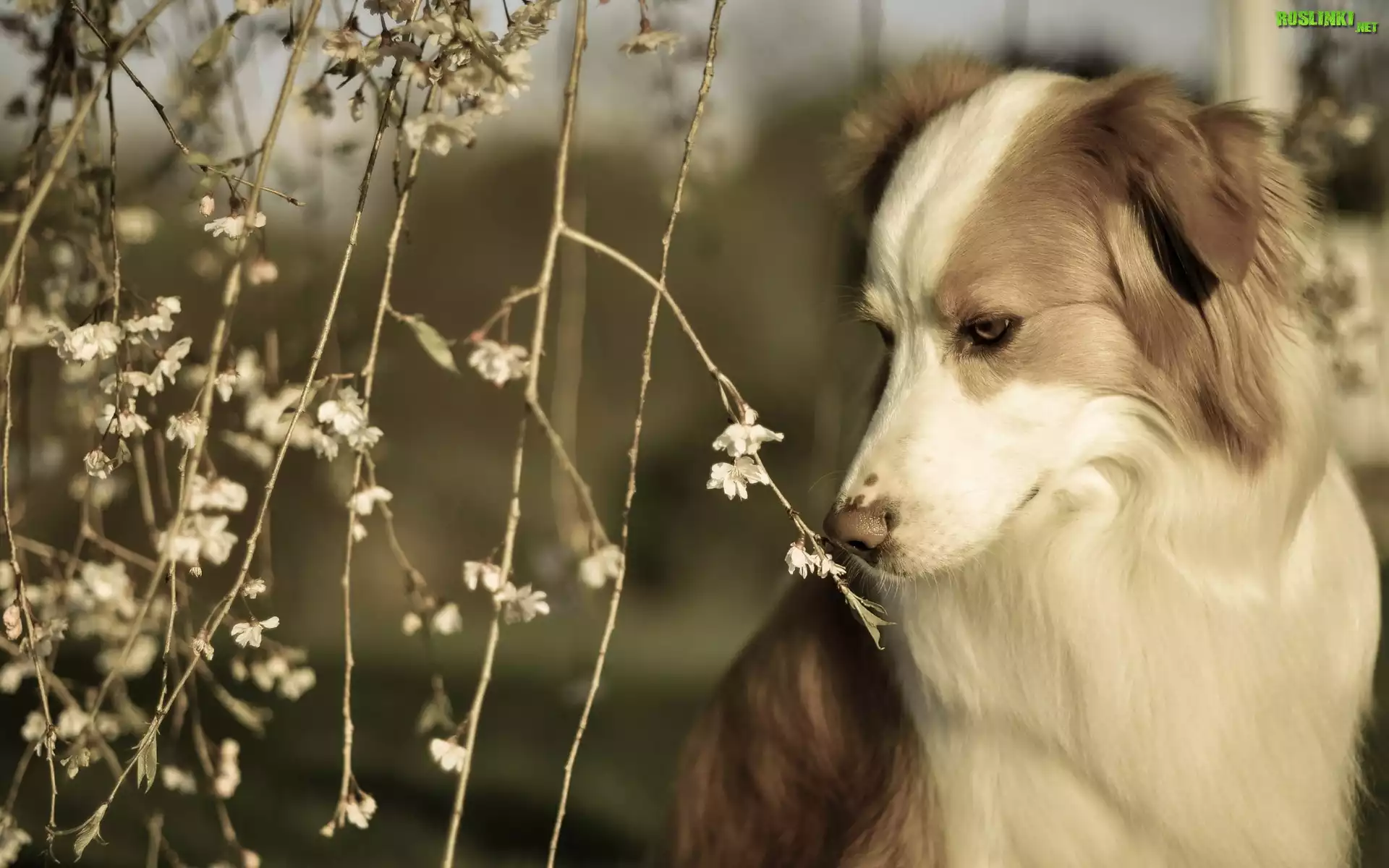 Piesek, Kundelek, Krzew, Kwiatki, Gałązki